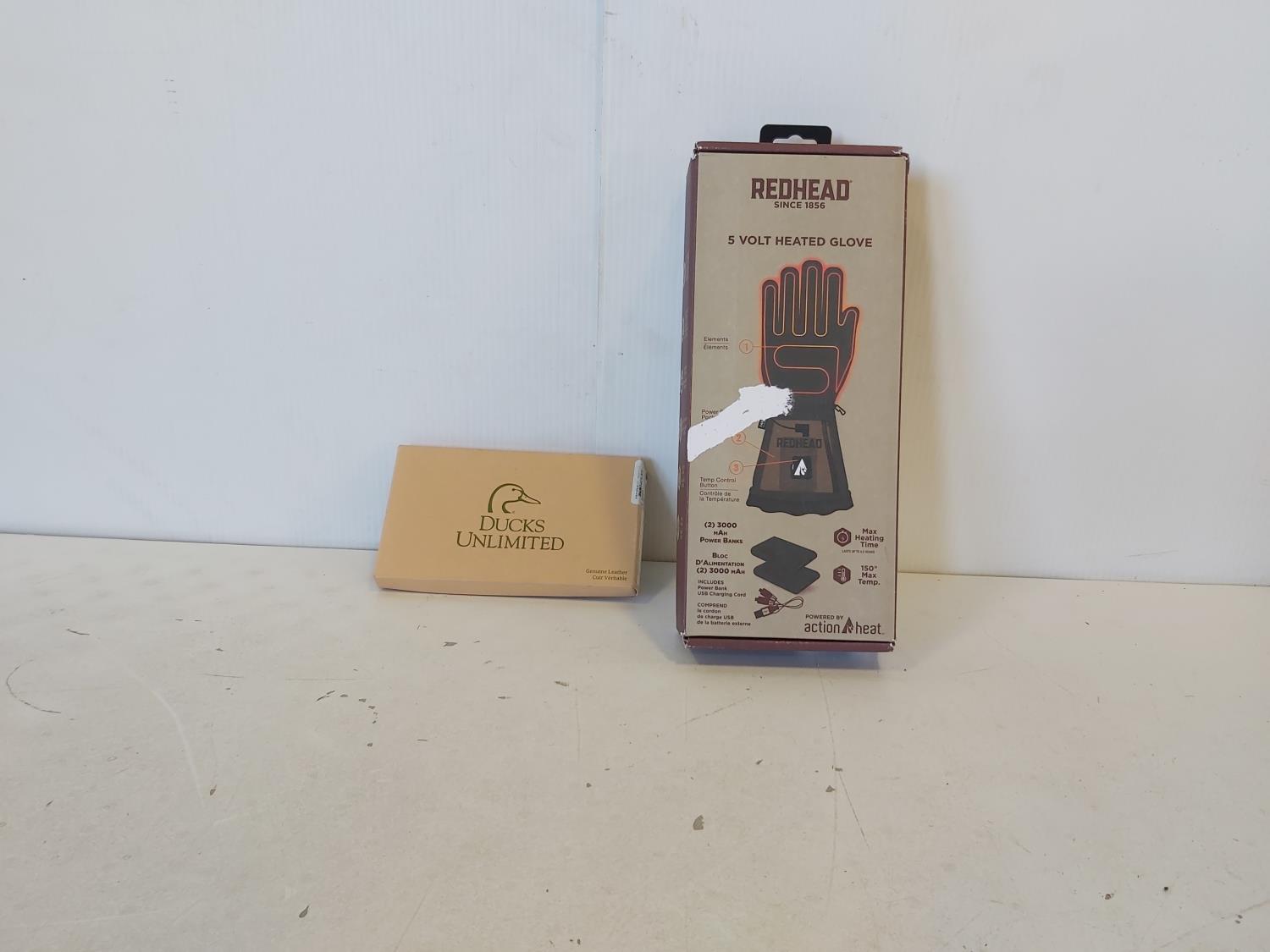 5113 Redhead 5V Size Large Heated Gloves and Ducks Unlimited Leather Roper Wallet