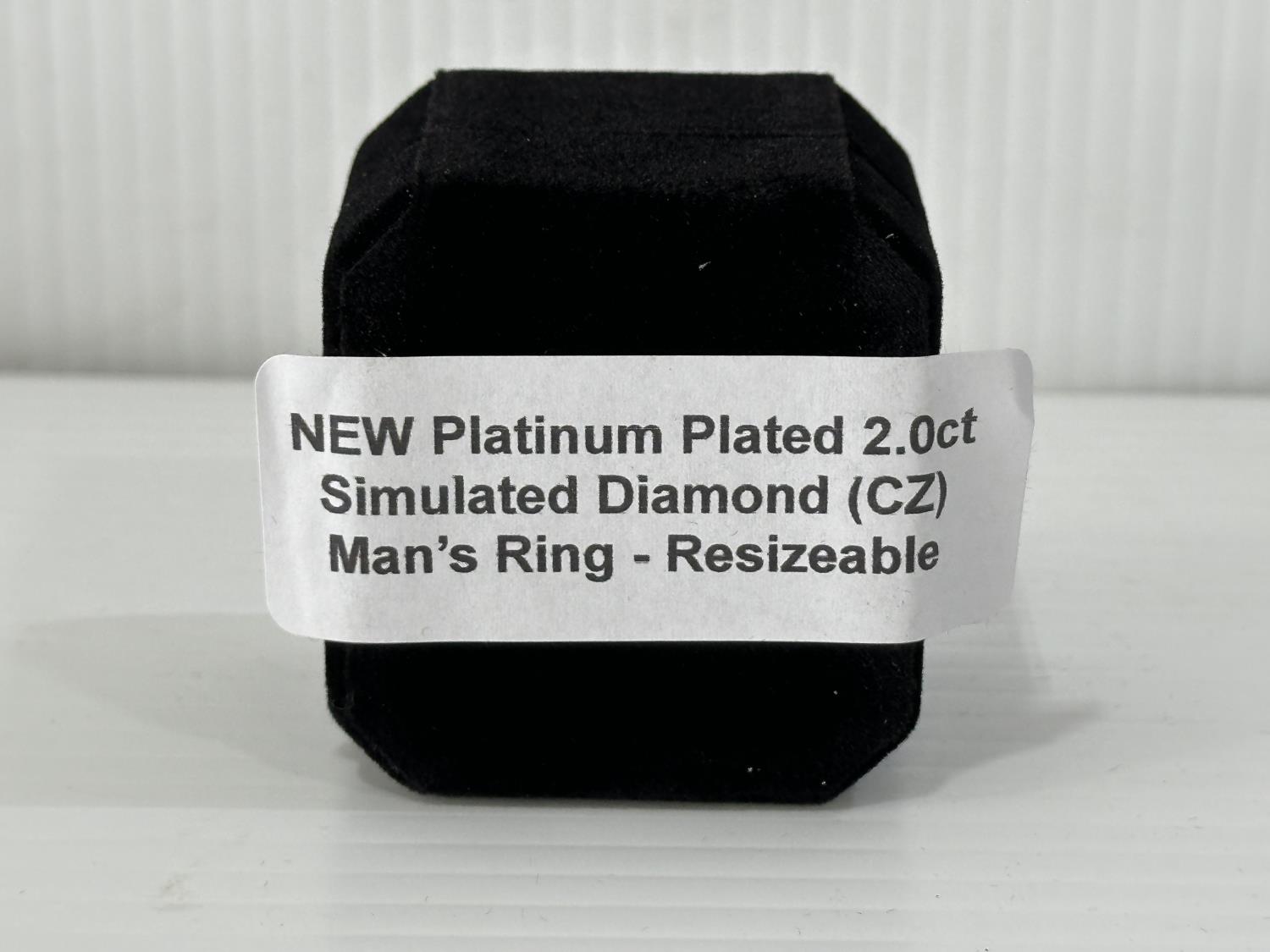 5011 Smartlife Platinum Plated 2.0 Ct Simulated Diamond (Cz) Men's Ring - Resizeable (Unused)