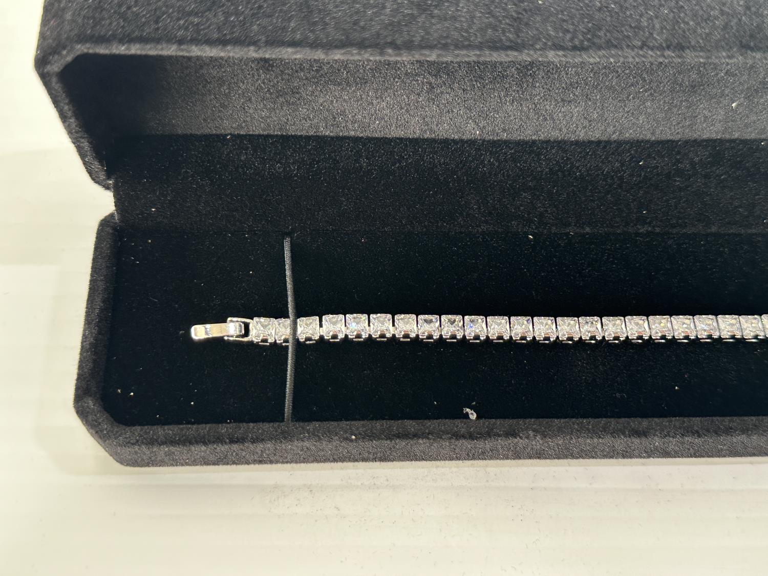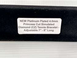 Smartlife Platinum Plated 4.0 mm Princess Cut Simulated Diamond (Cz) Tennis Bracelet (Unused)