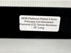 Smartlife Platinum Plated 4.0 mm Princess Cut Simulated Diamond (Cz) Tennis Necklace (Unused)