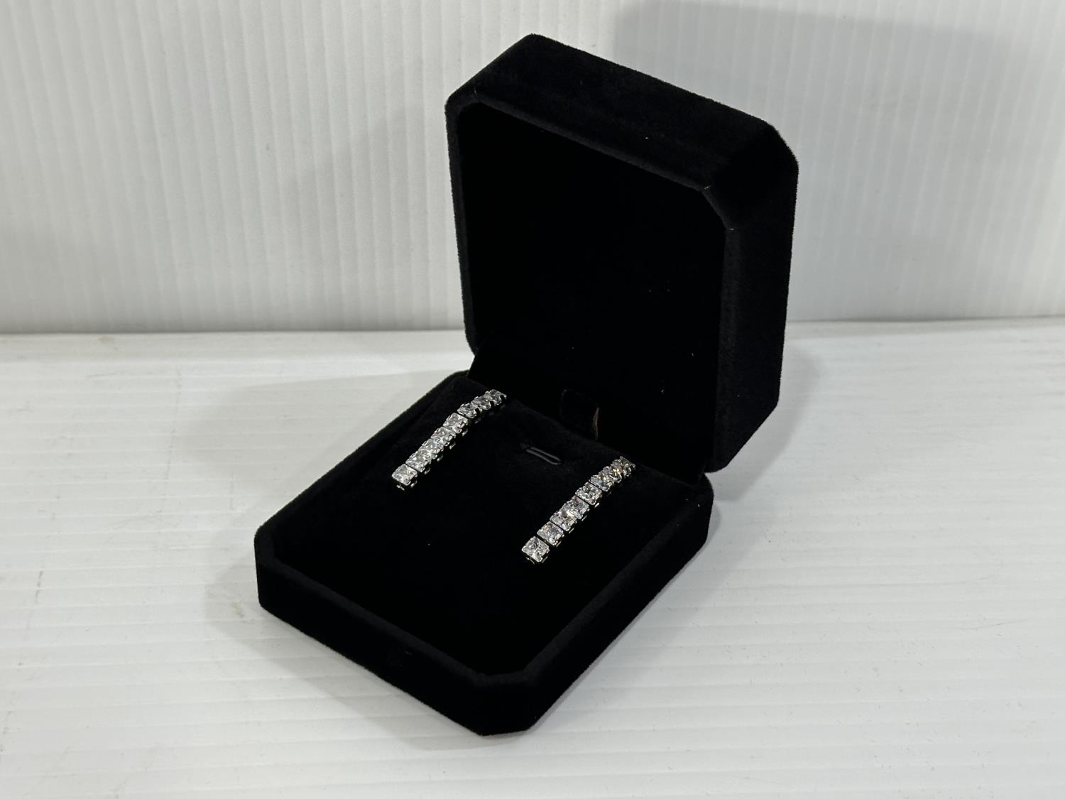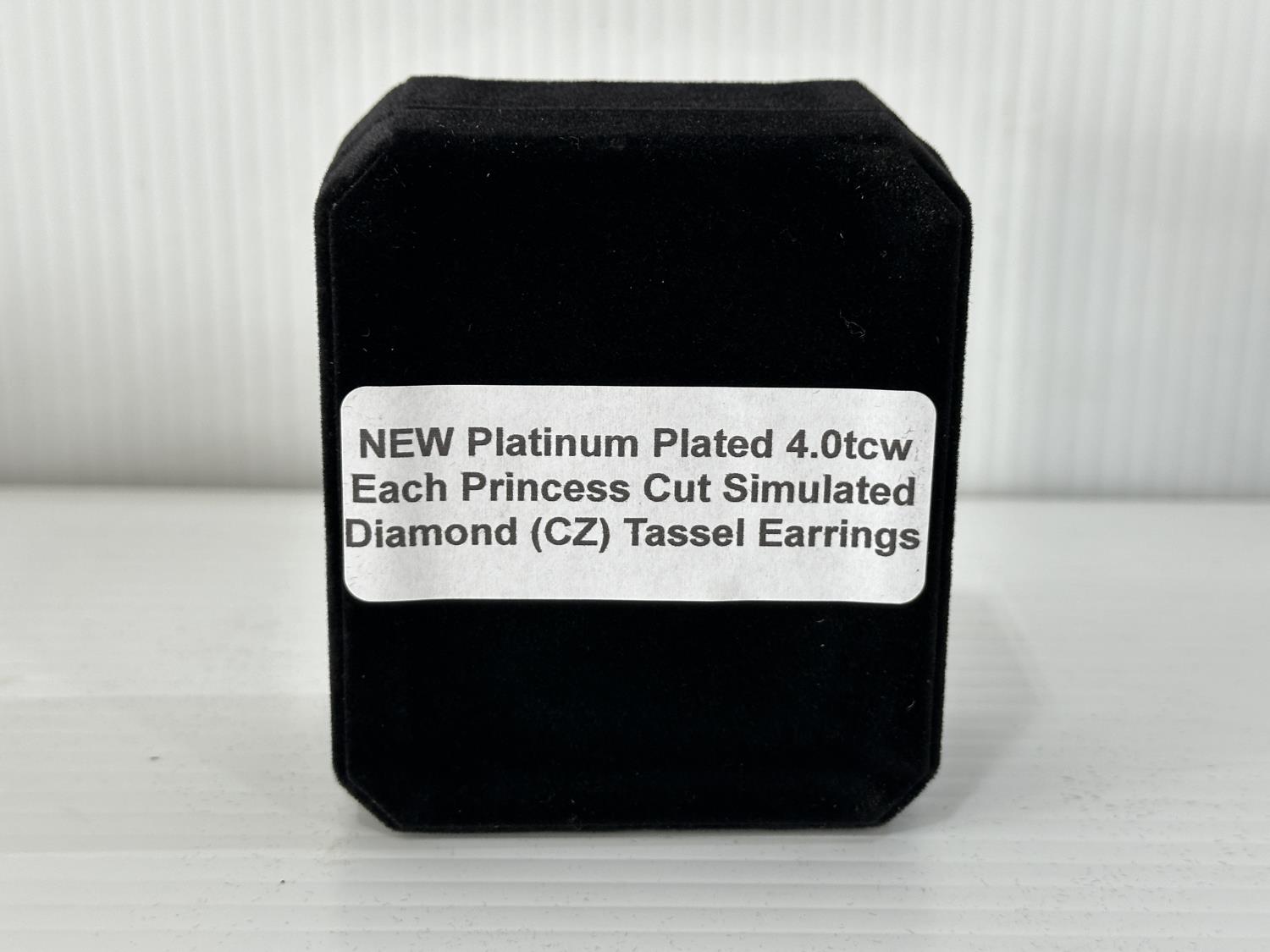 Smartlife Platinum Plated 4.0 Tcw Each Princess Cut Simulated Diamond (Cz) Tassel Earrings (Unused)