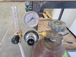 5251 Steel Welding Table On Wheels with Empty Argon Bottle