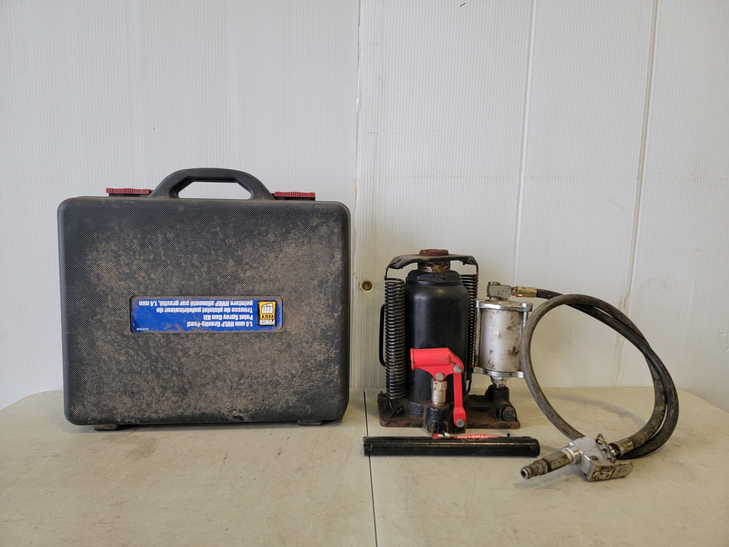 5044 Powerfist Paint Spray Gun and Motomaster 20 Ton Hydraulic Jack