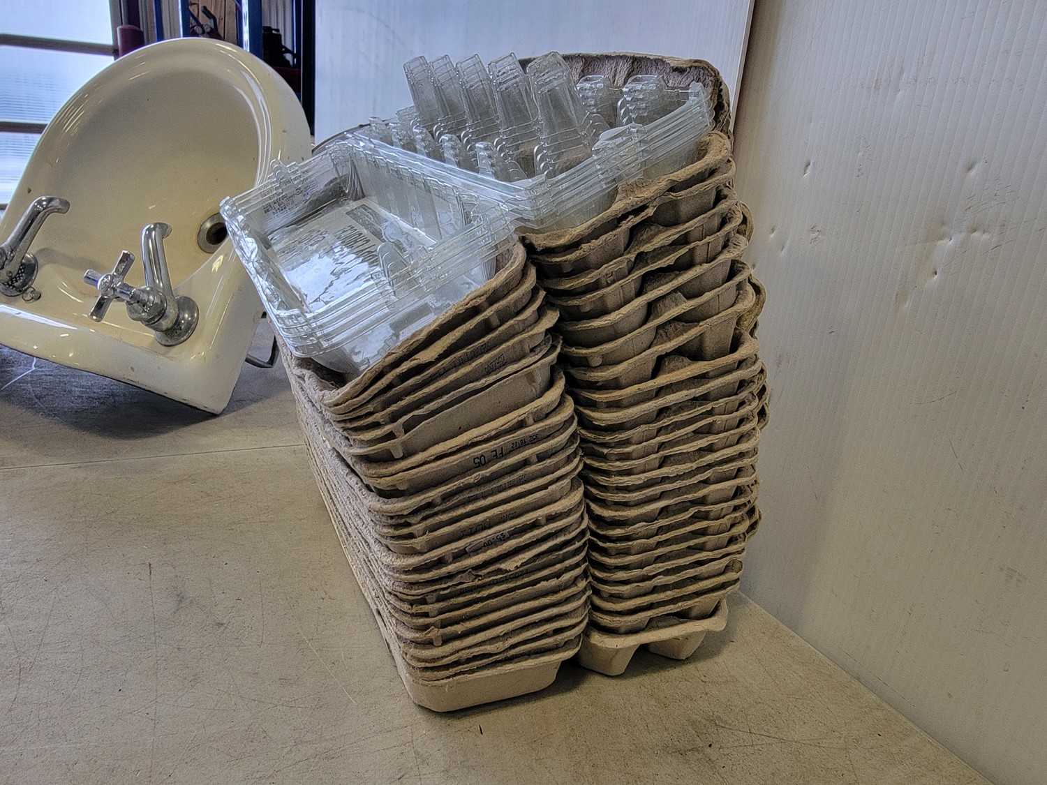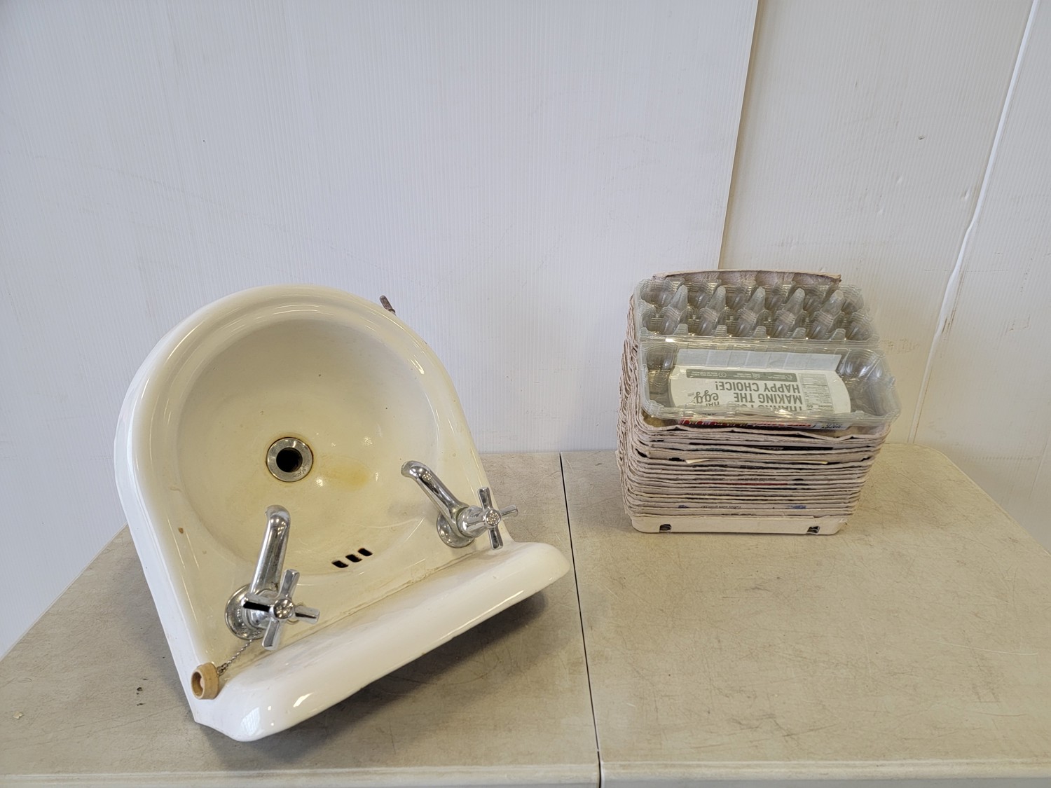 5047 Qty of Egg Cartons and Ceramic Sink