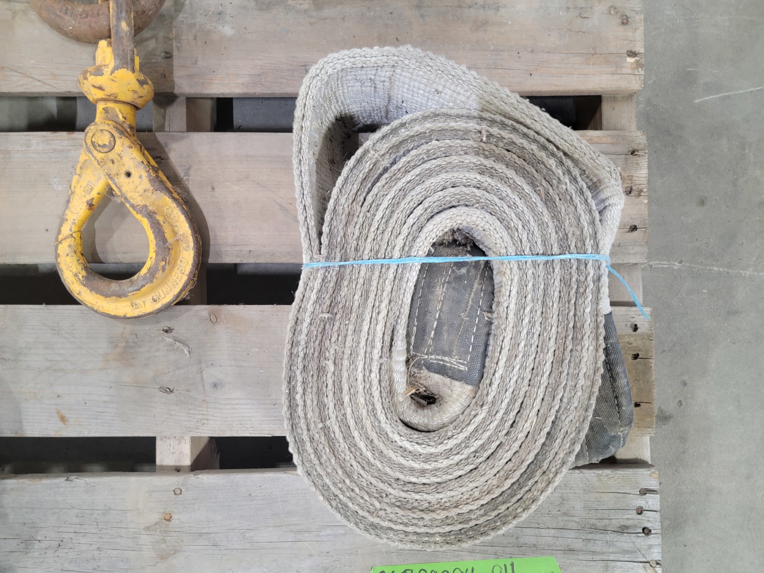 (4) shackles, (2) self locking swivel hooks, woodworking vise, top screw bench chain vise, (1) 100,000 lb tow strap