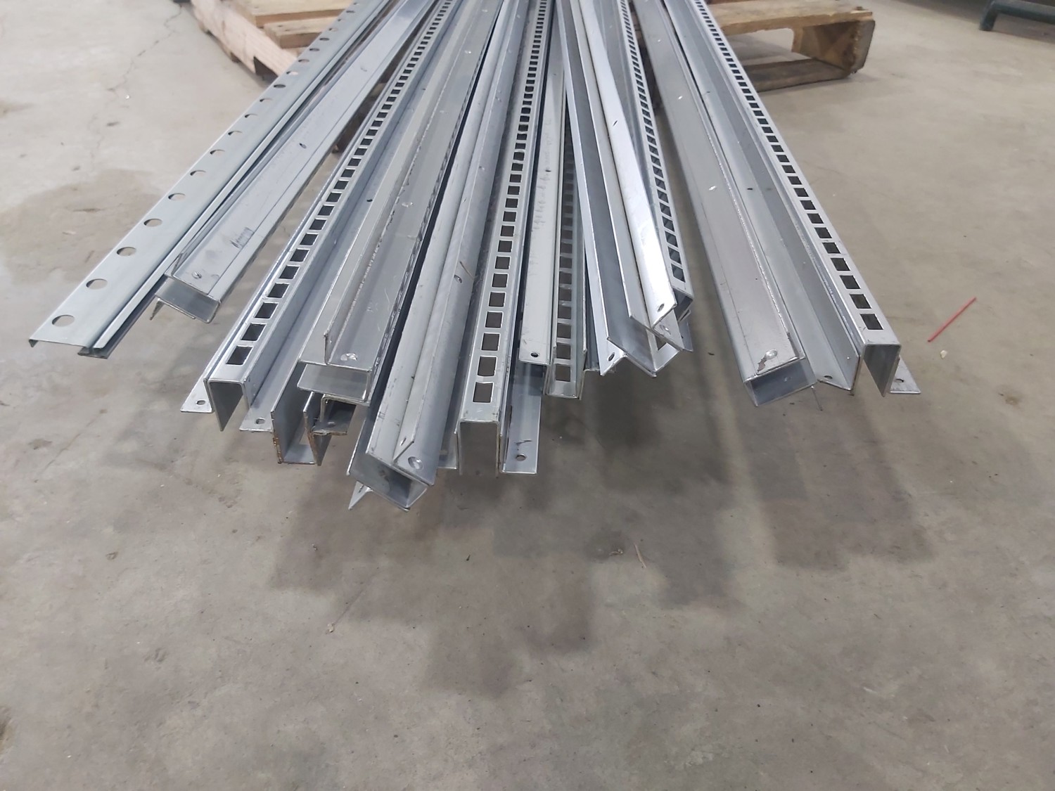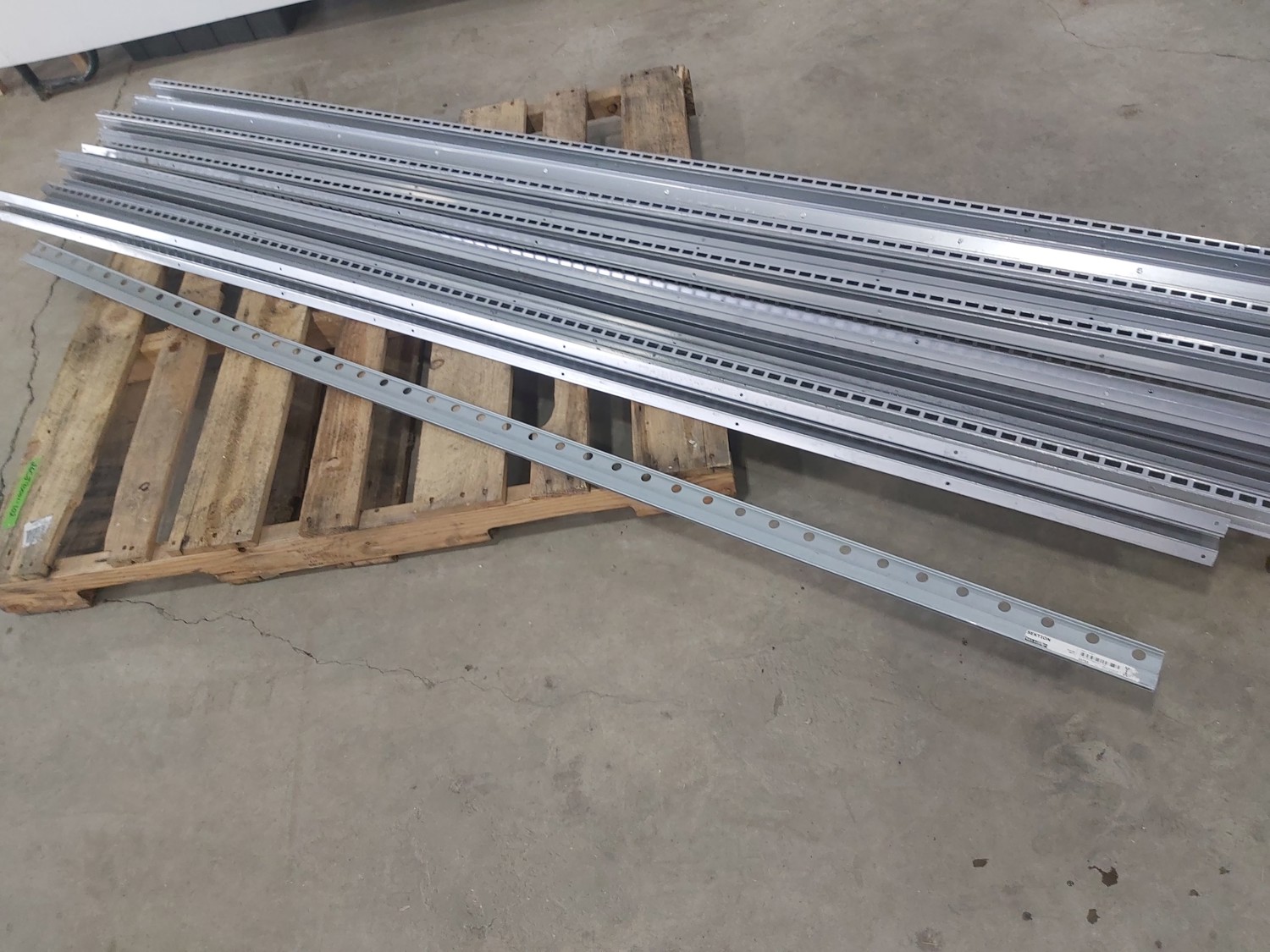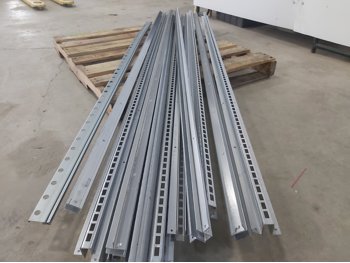 1216 (1) 84 Inch Sektion Cabinet Suspension Rail and (11) 8 Ft Metal Shelf Rails