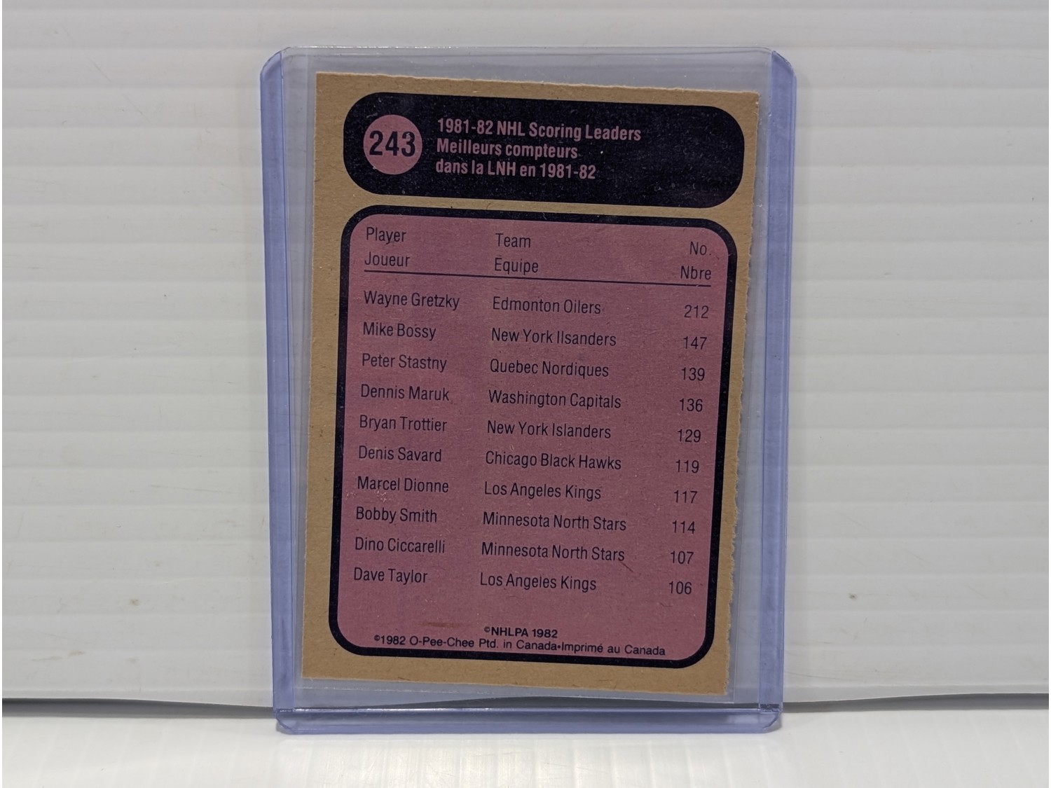 1499 1982 O-Pee-Chee #243 Wayne Gretzky Scoring Leader Hockey Card
