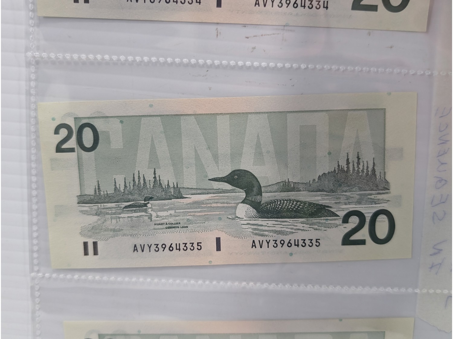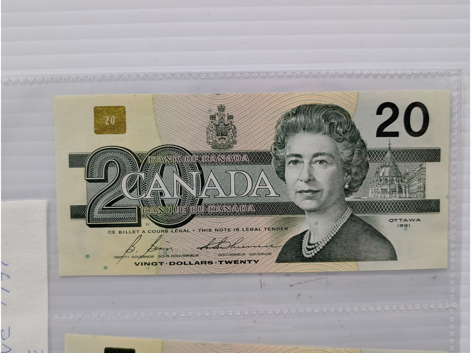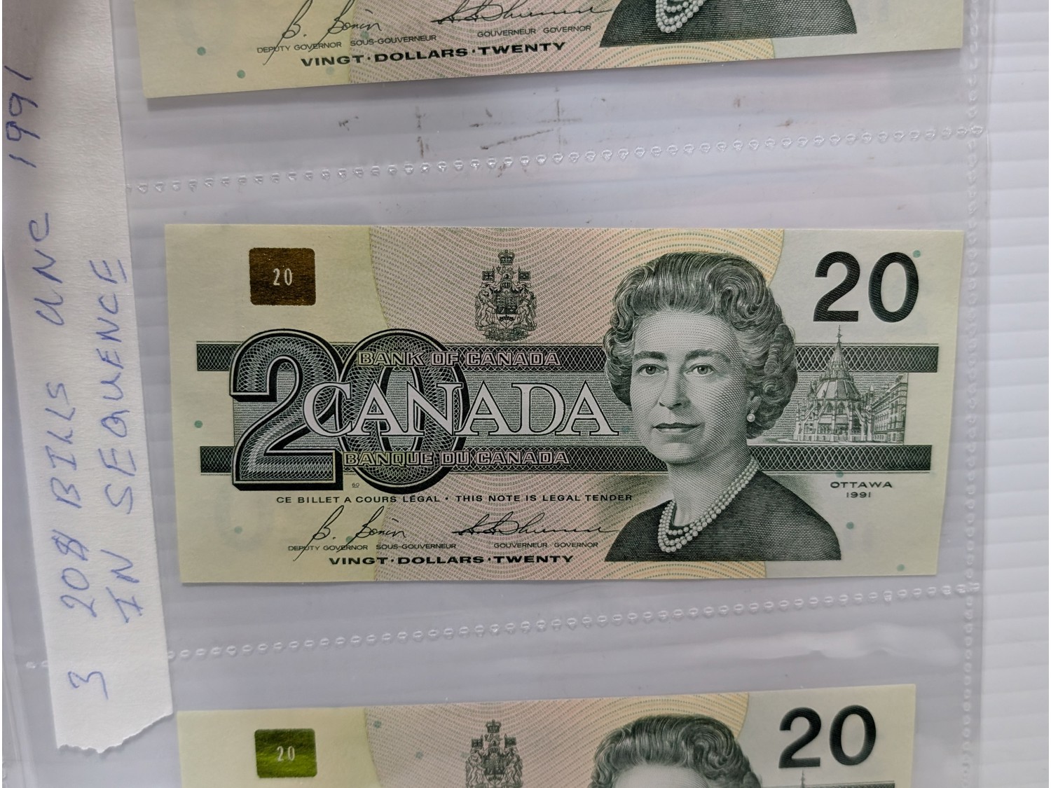 1519 (3) 1991 Uncirculated Twenty Dollar Bills in Sequential Order