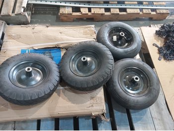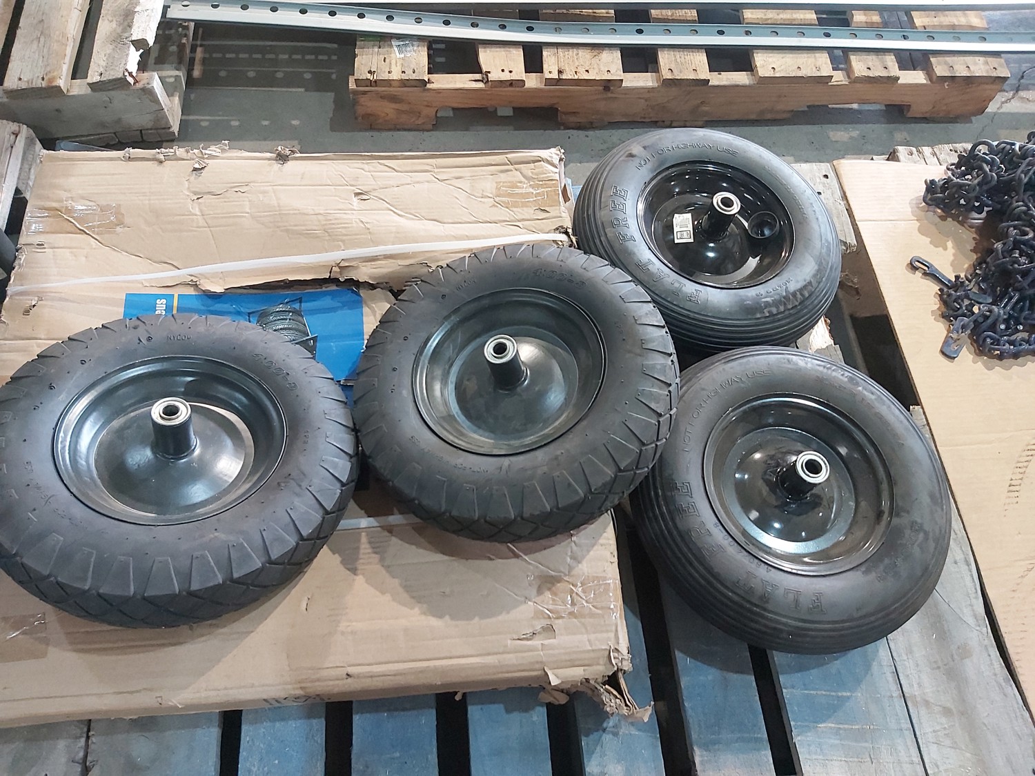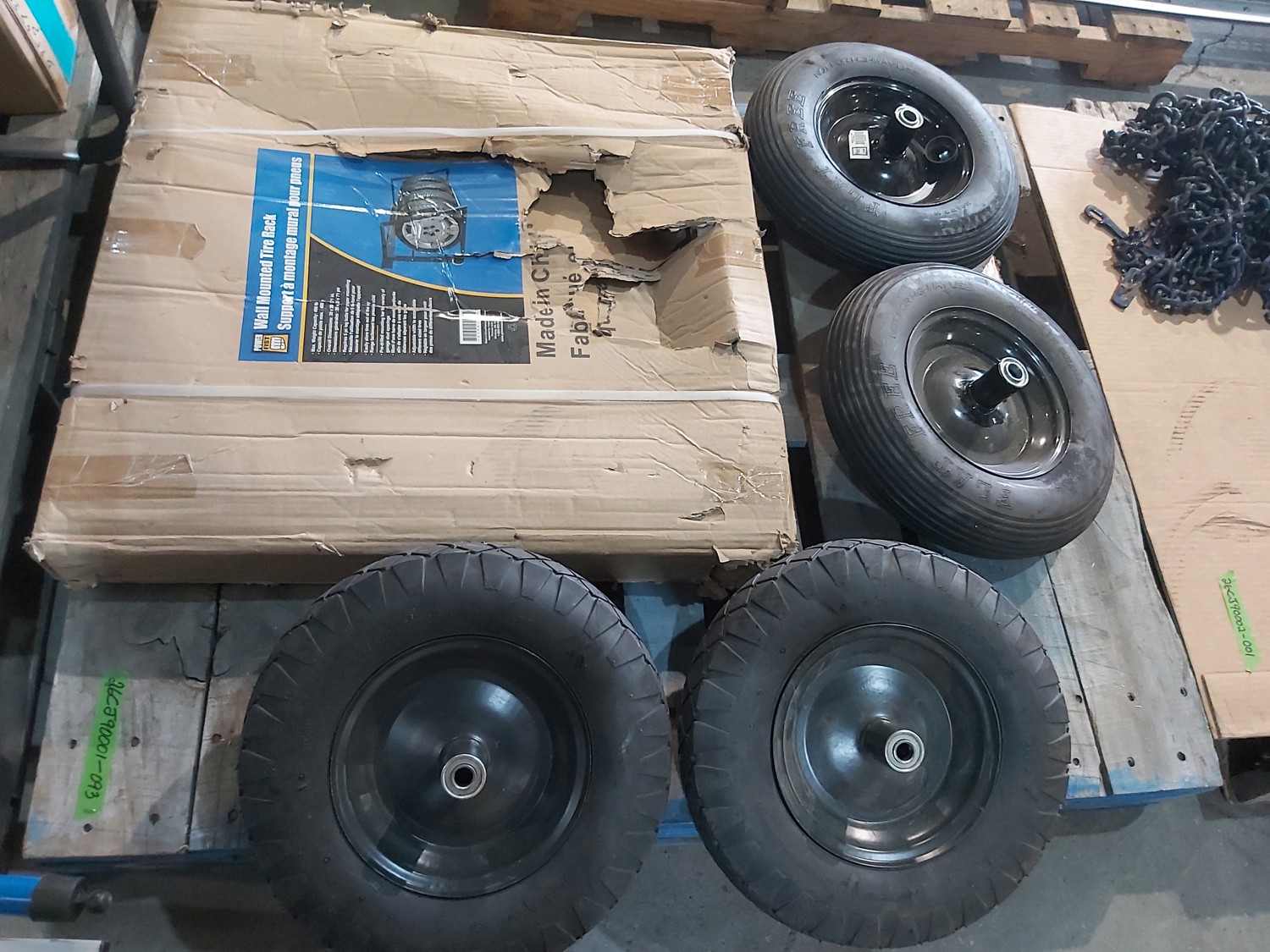 1224 (4) 4.00-8 Utility Tires and Powerfist Wall Mounted Tire Rack