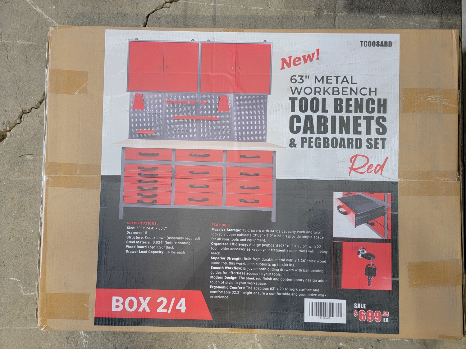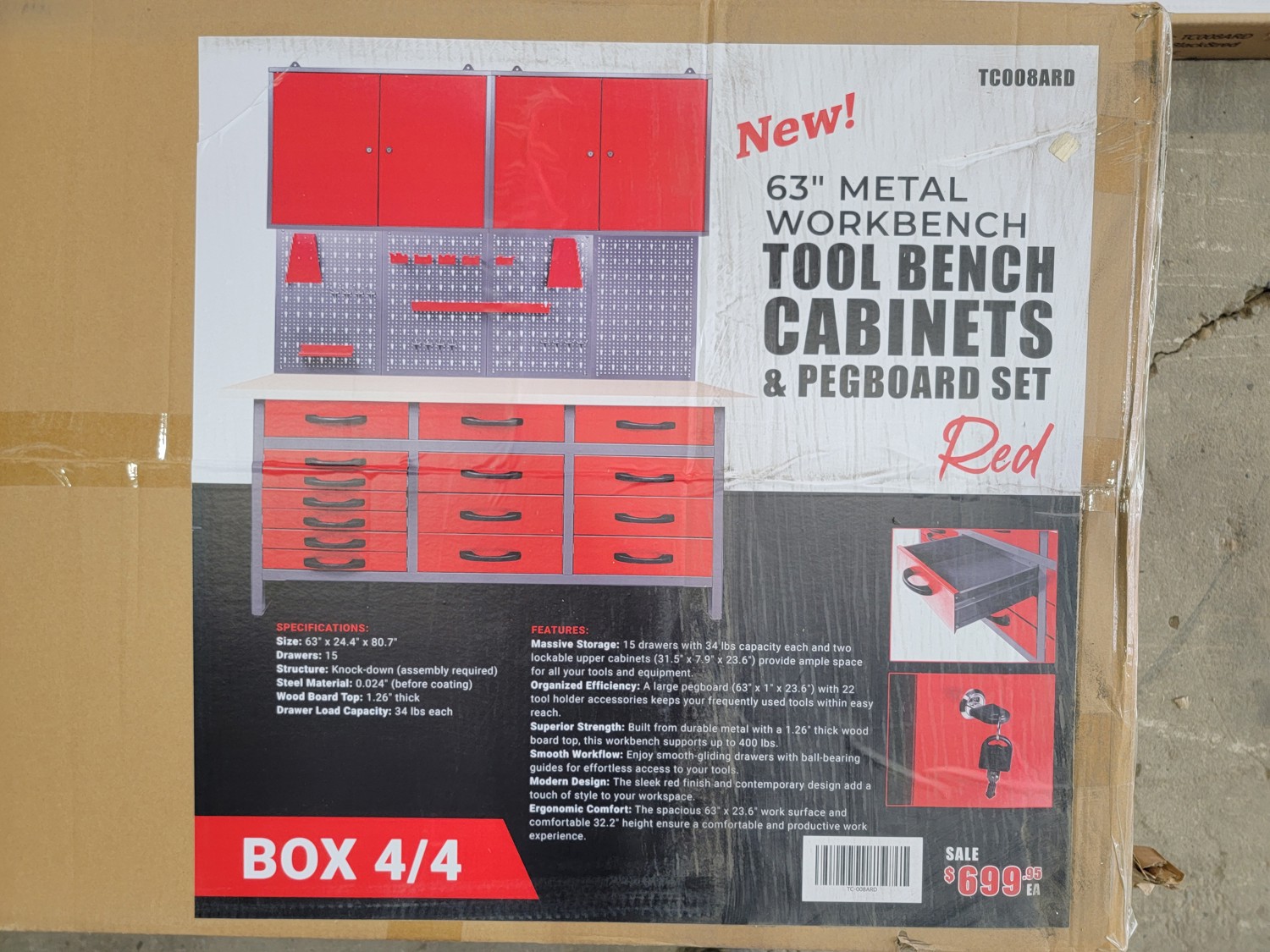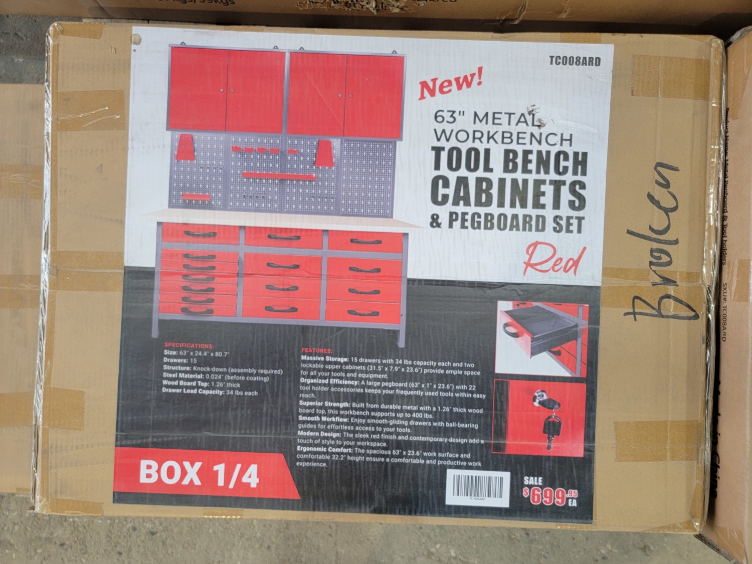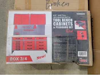 63 Inch Metal Work Tool Bench with Cabinets (Unused)