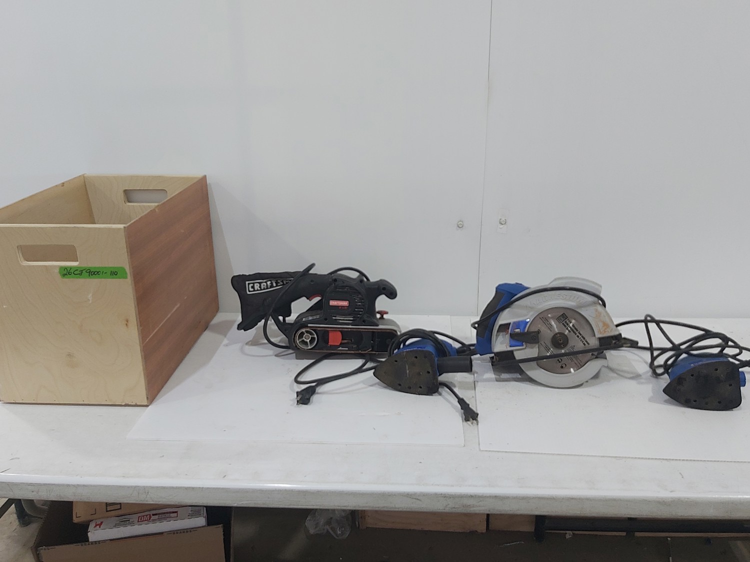 1048 Belt Sander, 7-1/4 Inch Circular Saw and (2) Palm Sanders