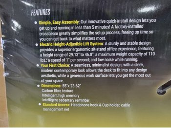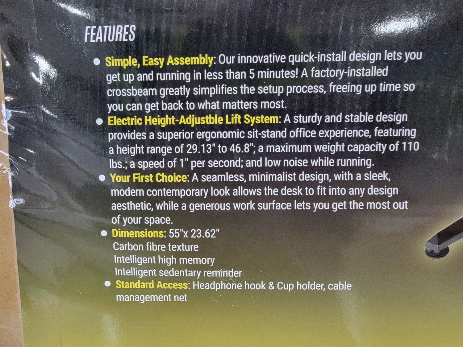 55 inch w x 23.62 inch d x 29.13 inch h to 46.8 inch h