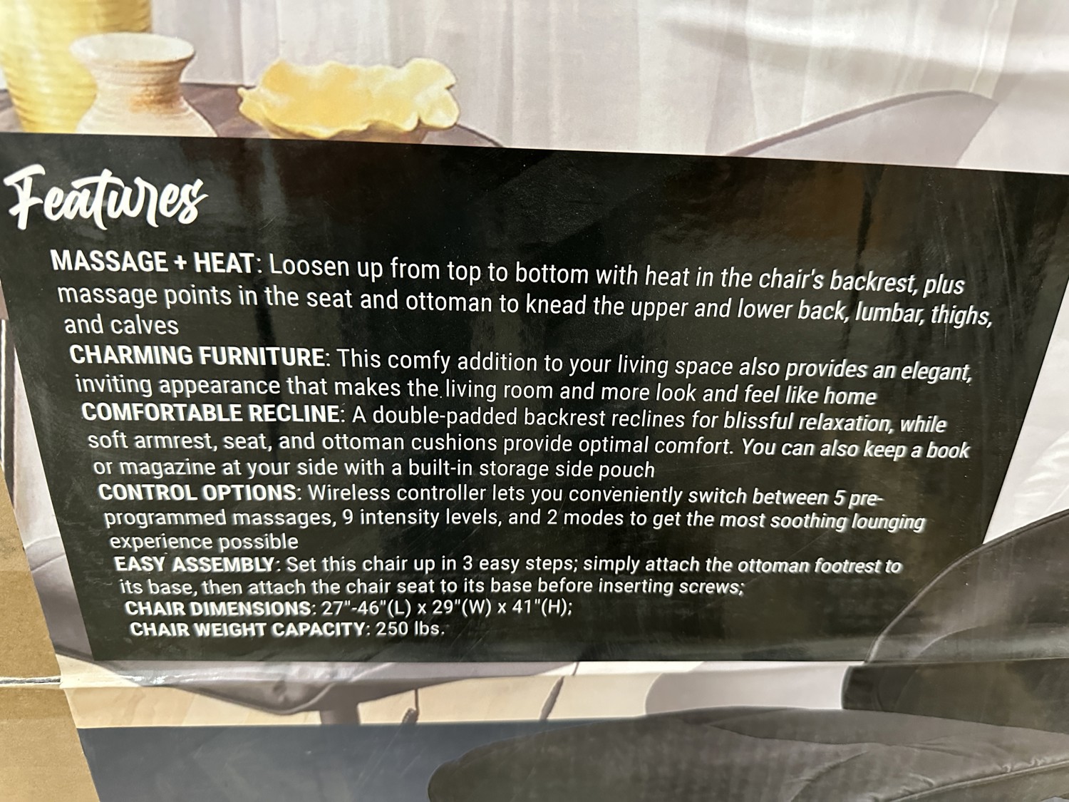 Electric Massage Recliner Chair and Ottoman (Unused)