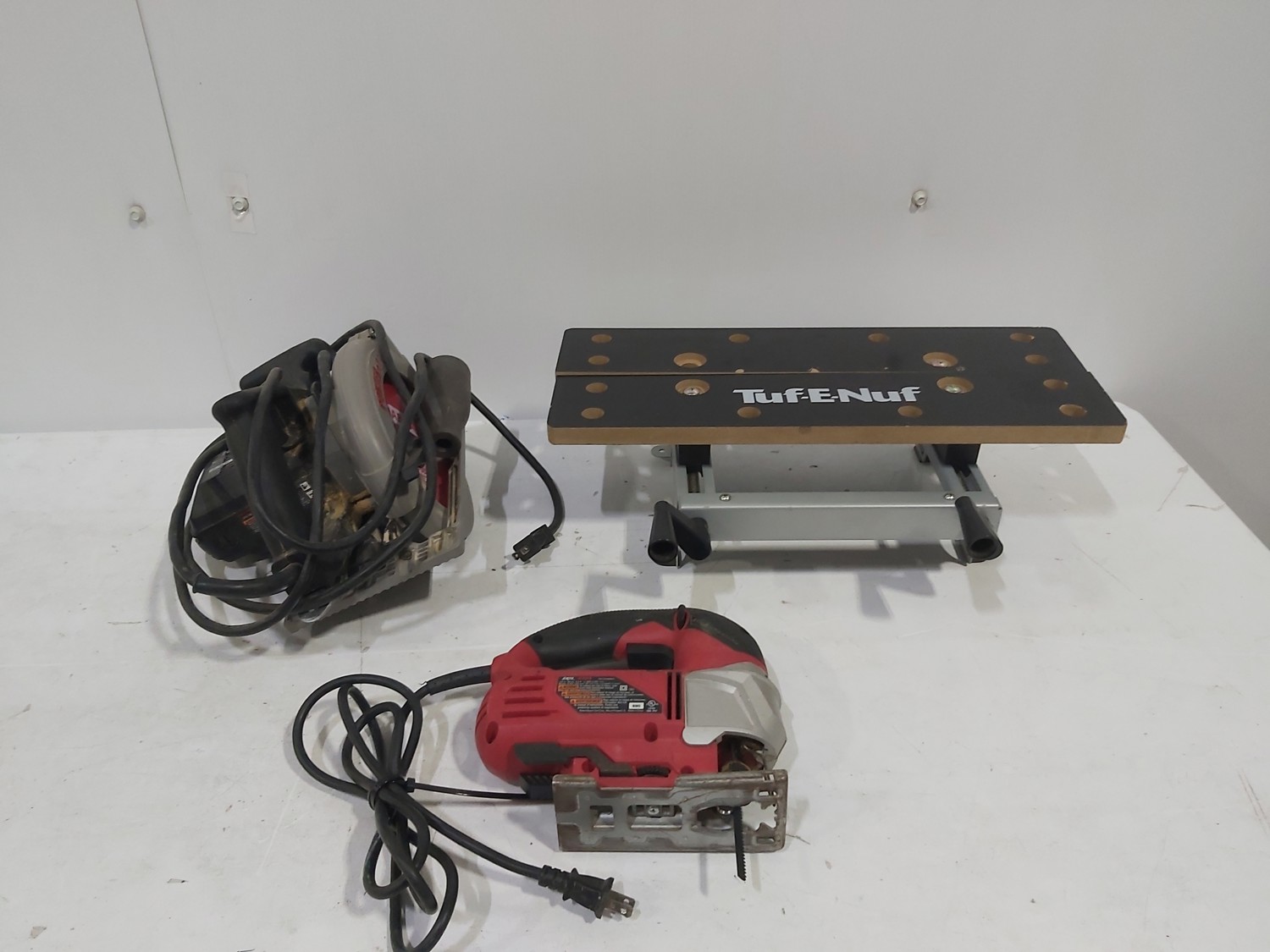 1187 Porter Cable 7-1/4 Inch Circular Saw, Skil Jigsaw and Tuf-E-Nuf Table-Top Workbench