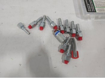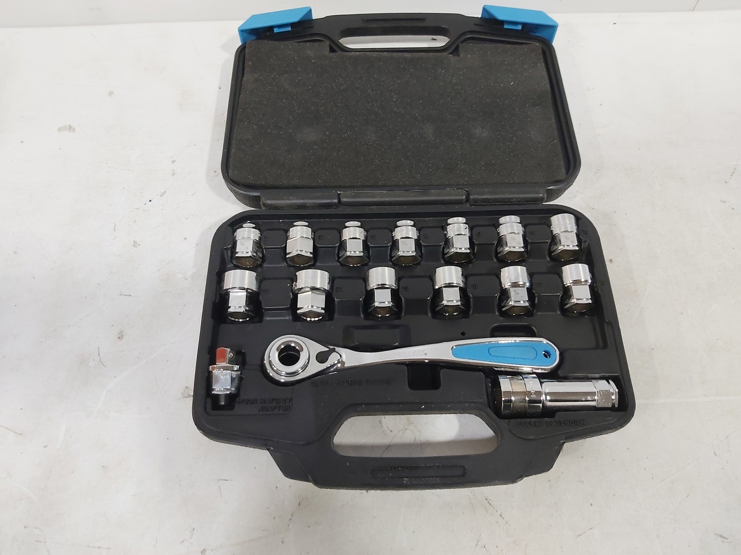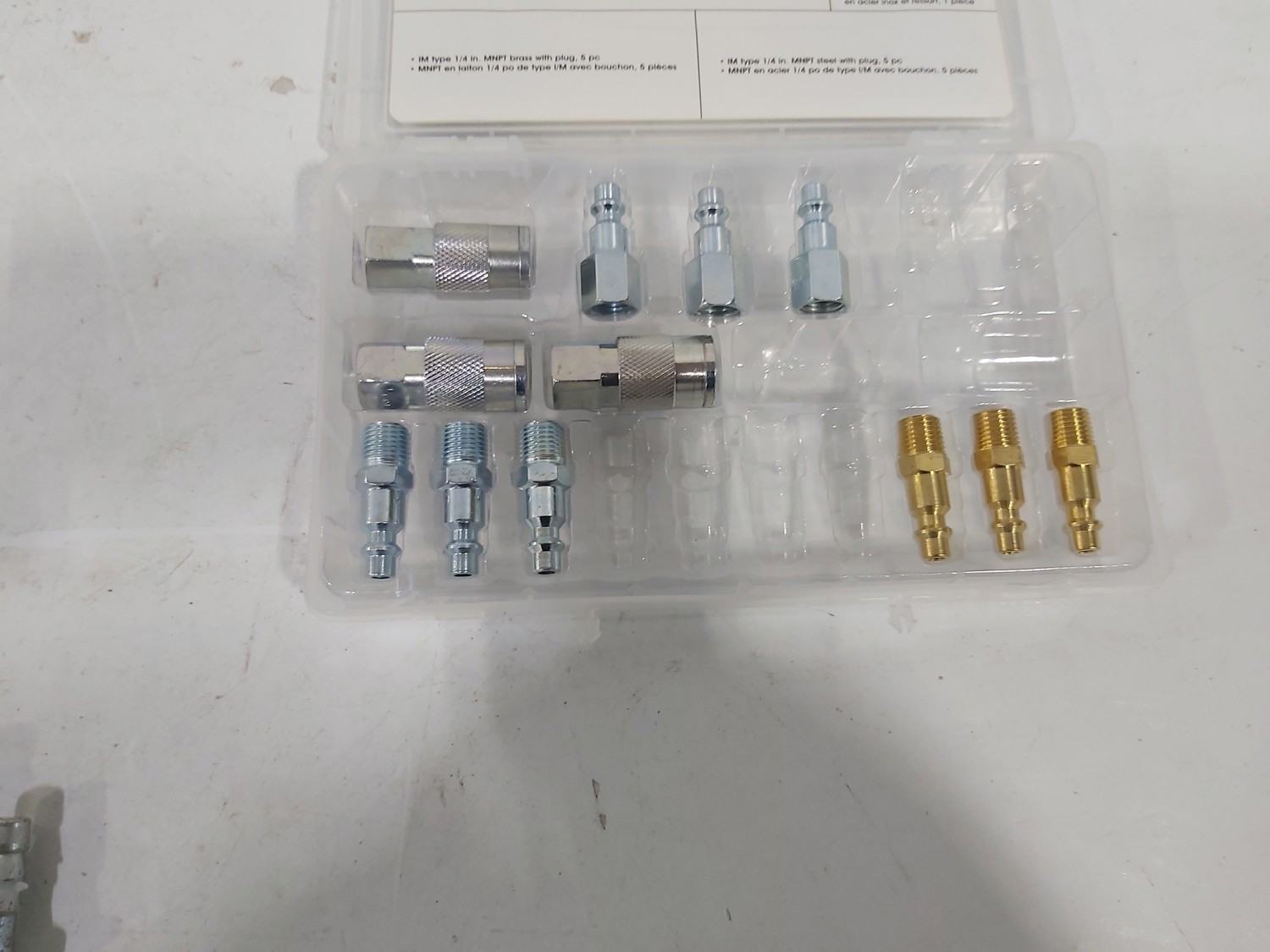 1054 Qty of Air Compressor Connectors, Hoses and Channel Lock 16 Piece Socket Set