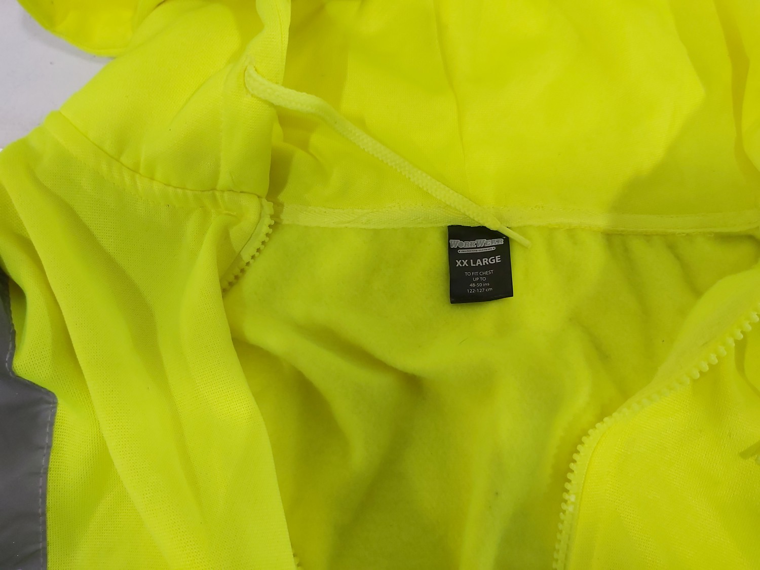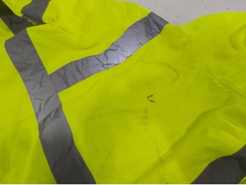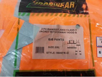 men's size small briefs, size small t-shirts, (2) size 2XL hoodies, (2) 2XL piece rainsuits, hi-vis vests