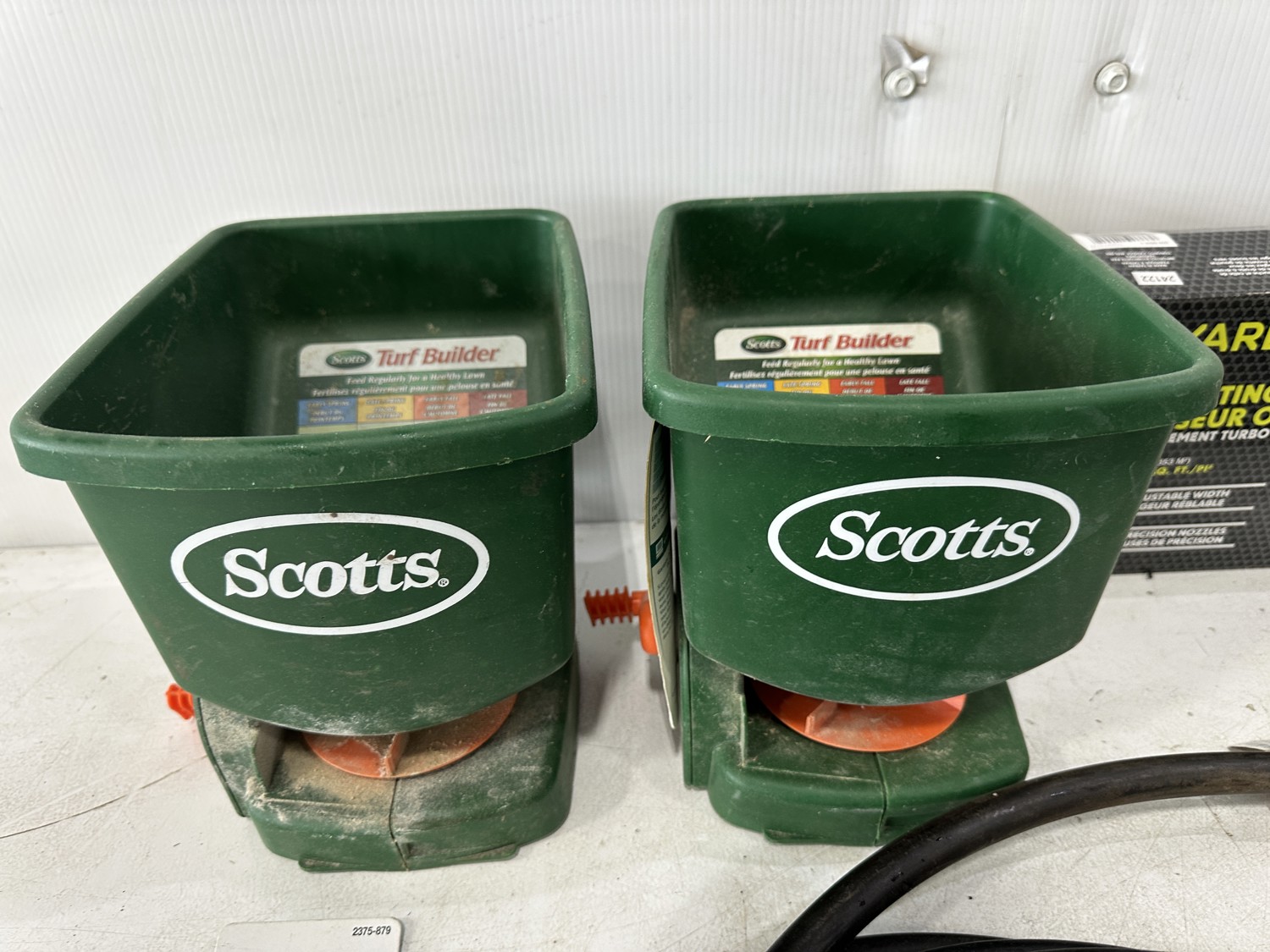 (2) handheld broadcast spreaders, sprinklers