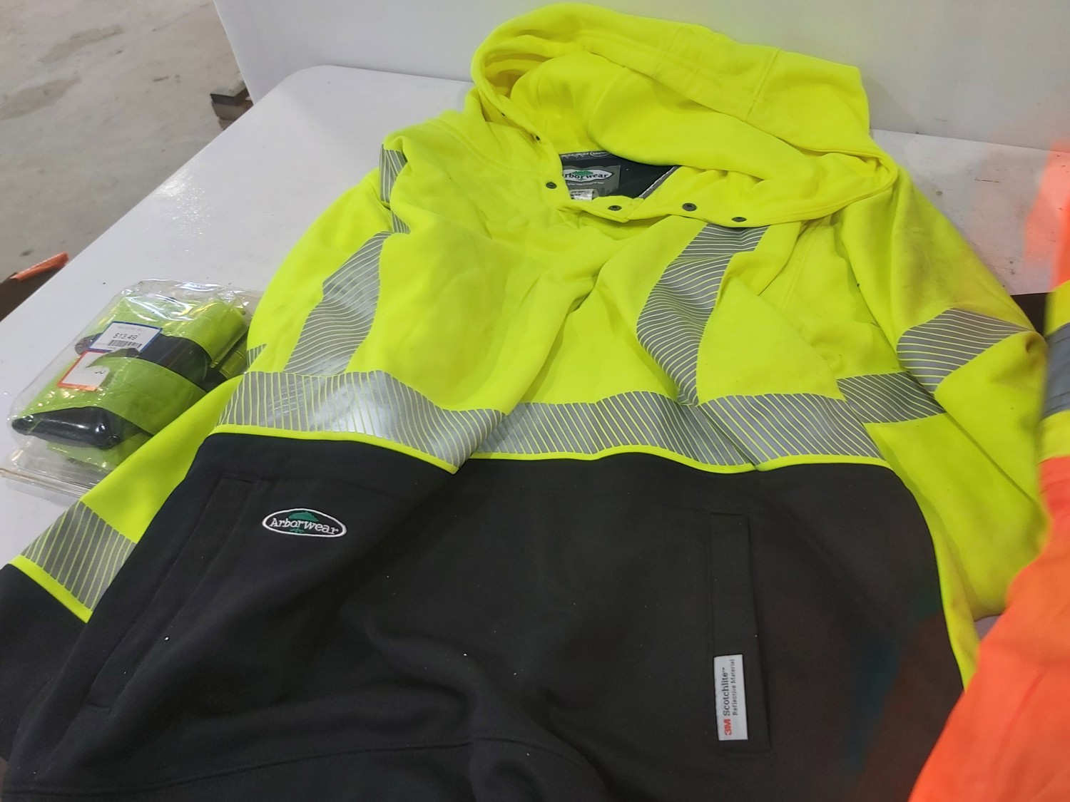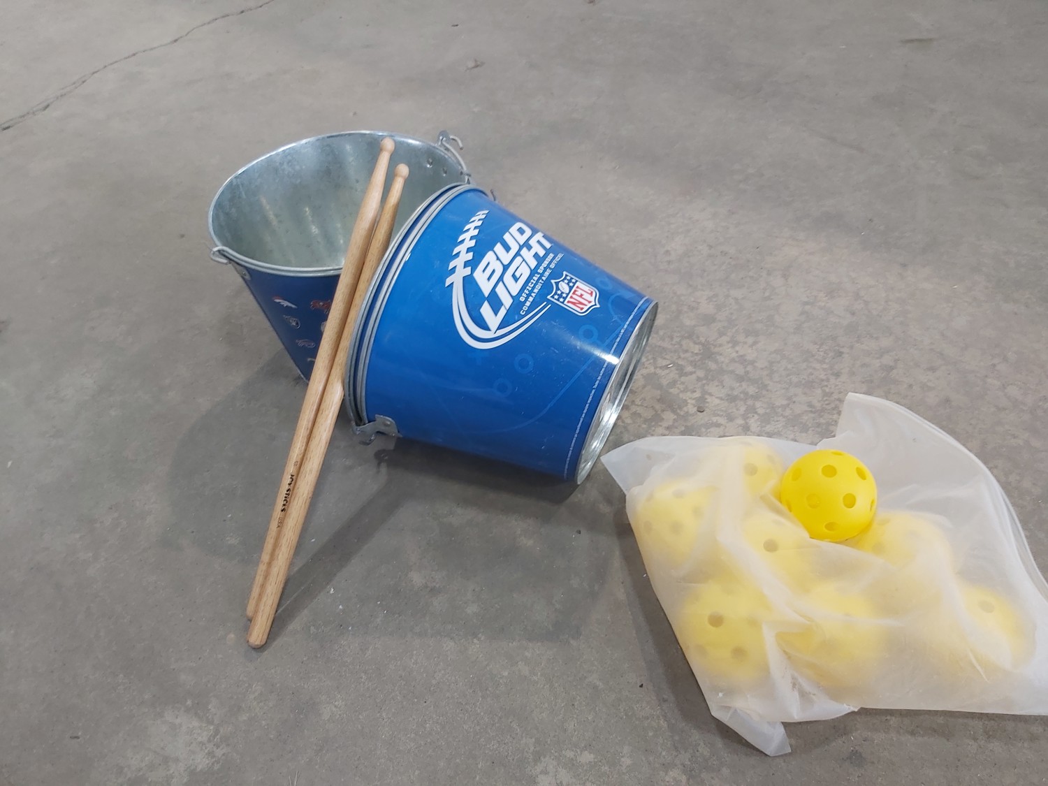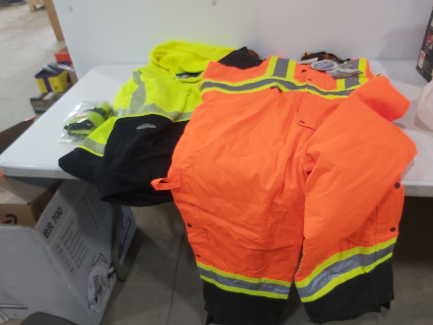 (2) pole caddy organizers, Yamaha foot pedal, drumsticks, golf bag, Eastman butcher set, sck sliders, hi-vis safety wear
