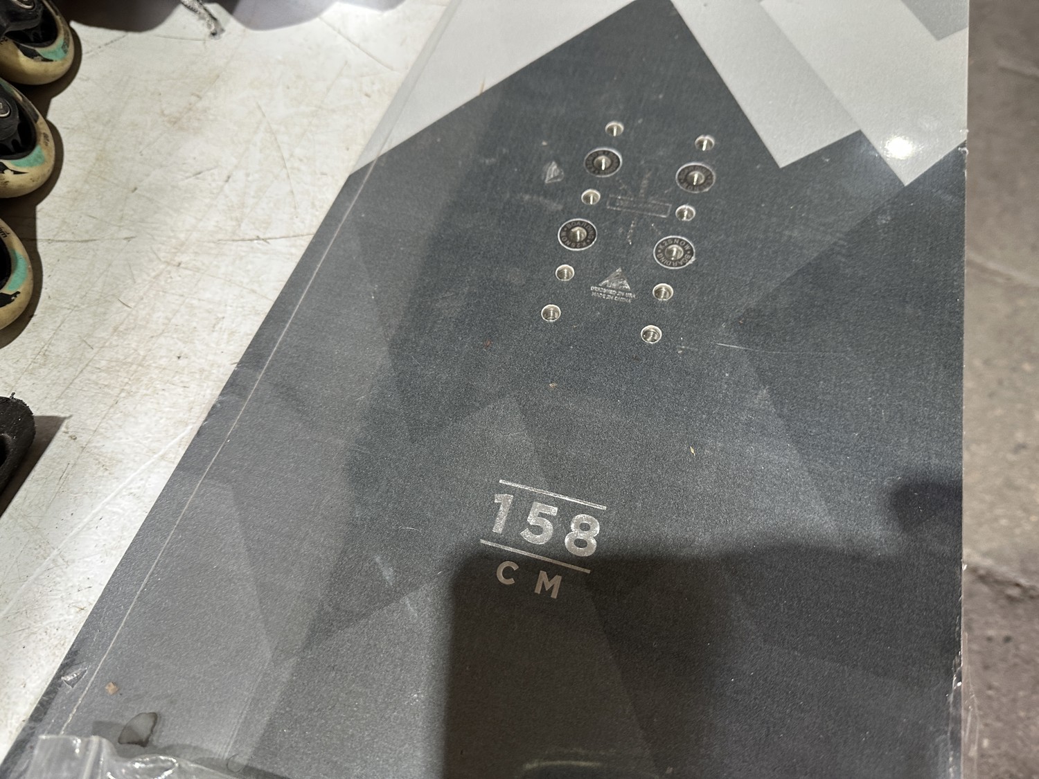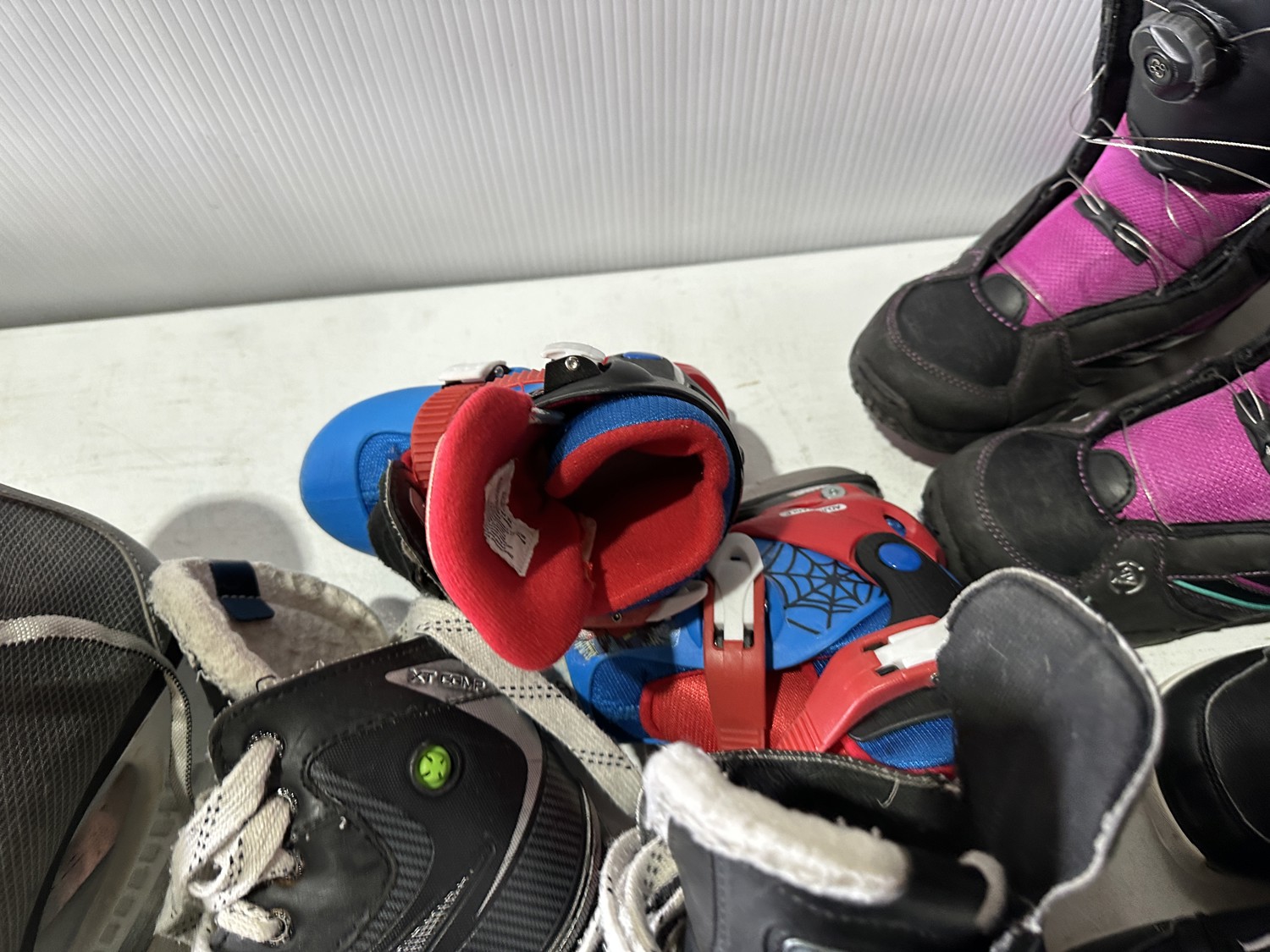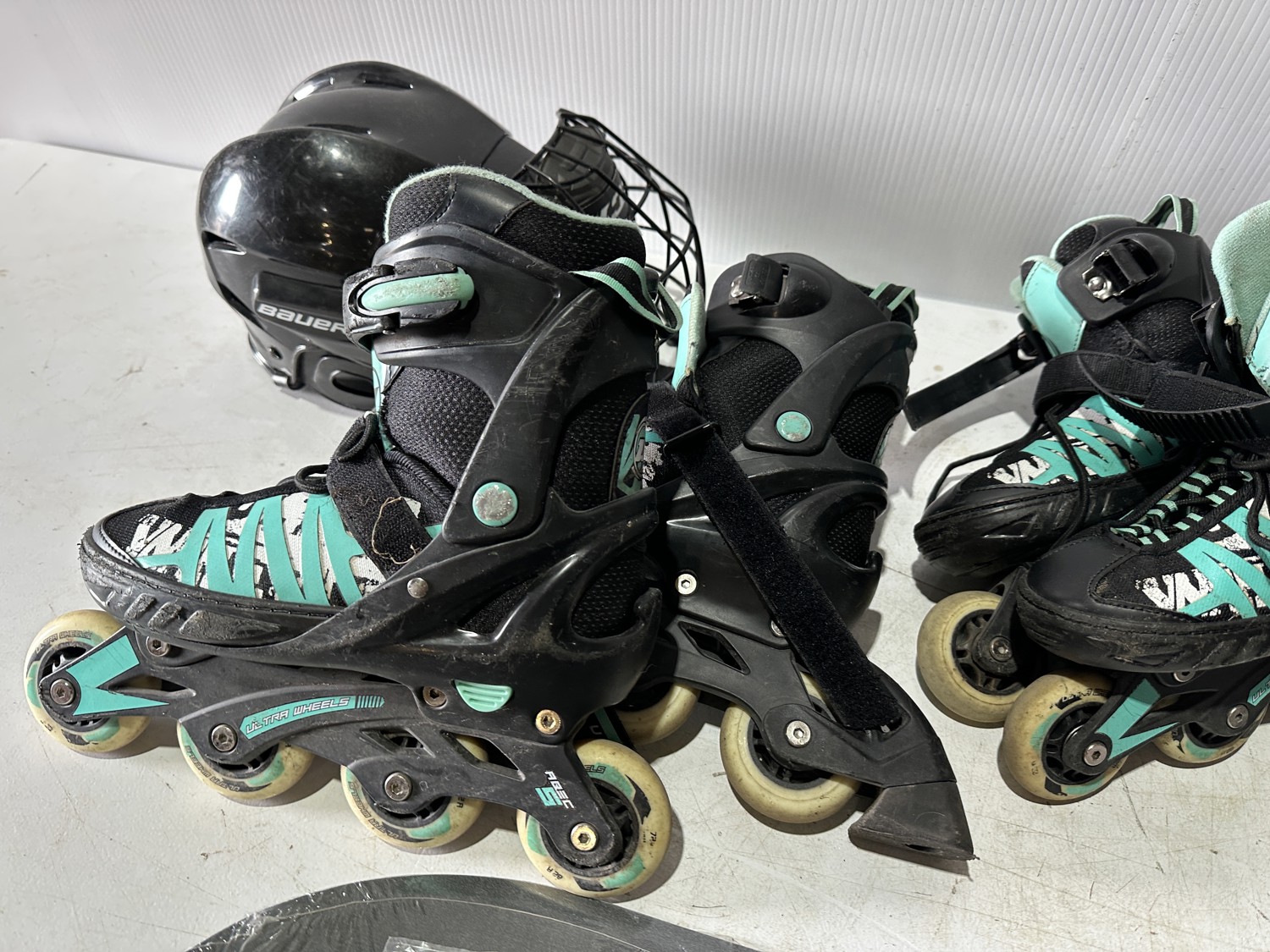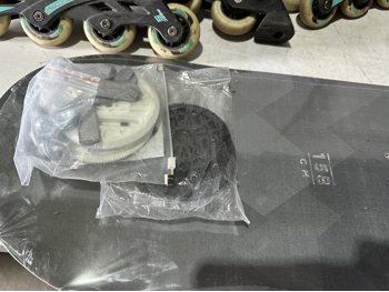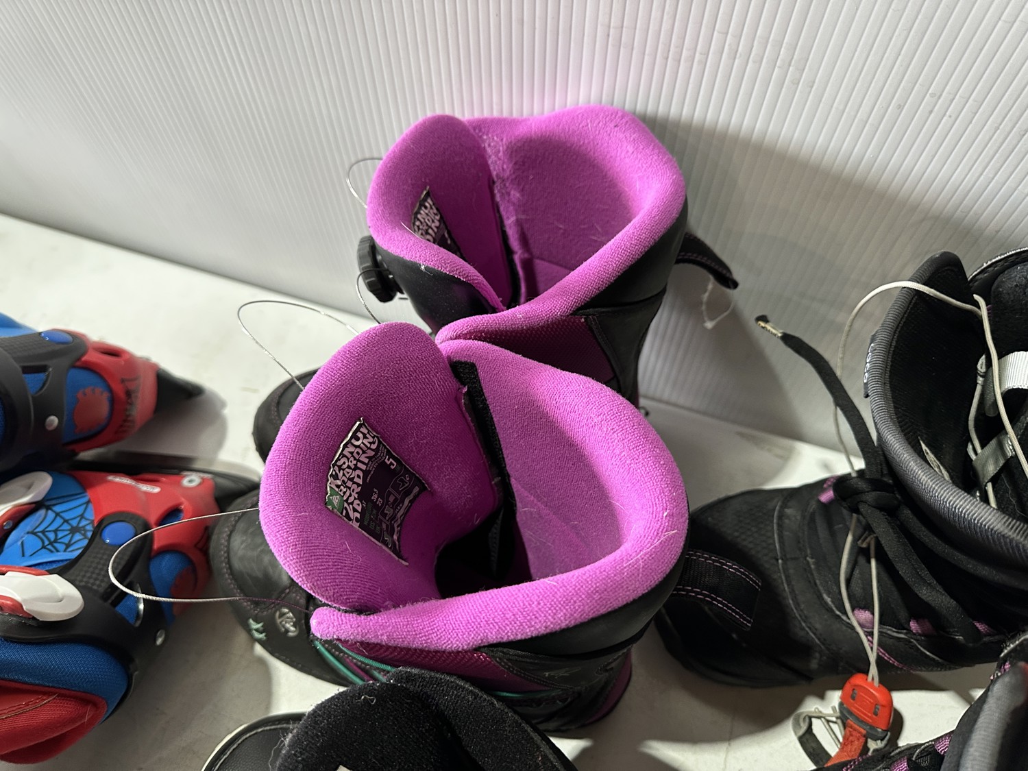 158 cm snowboard, ladies size 8 snowboard boots, girls size 5 snowboard boots, boys size 3 snowboard boots, adjustable Y8-Y11 skates, (2) pairs of ice skates, (2) pairs of roller blades, helmet