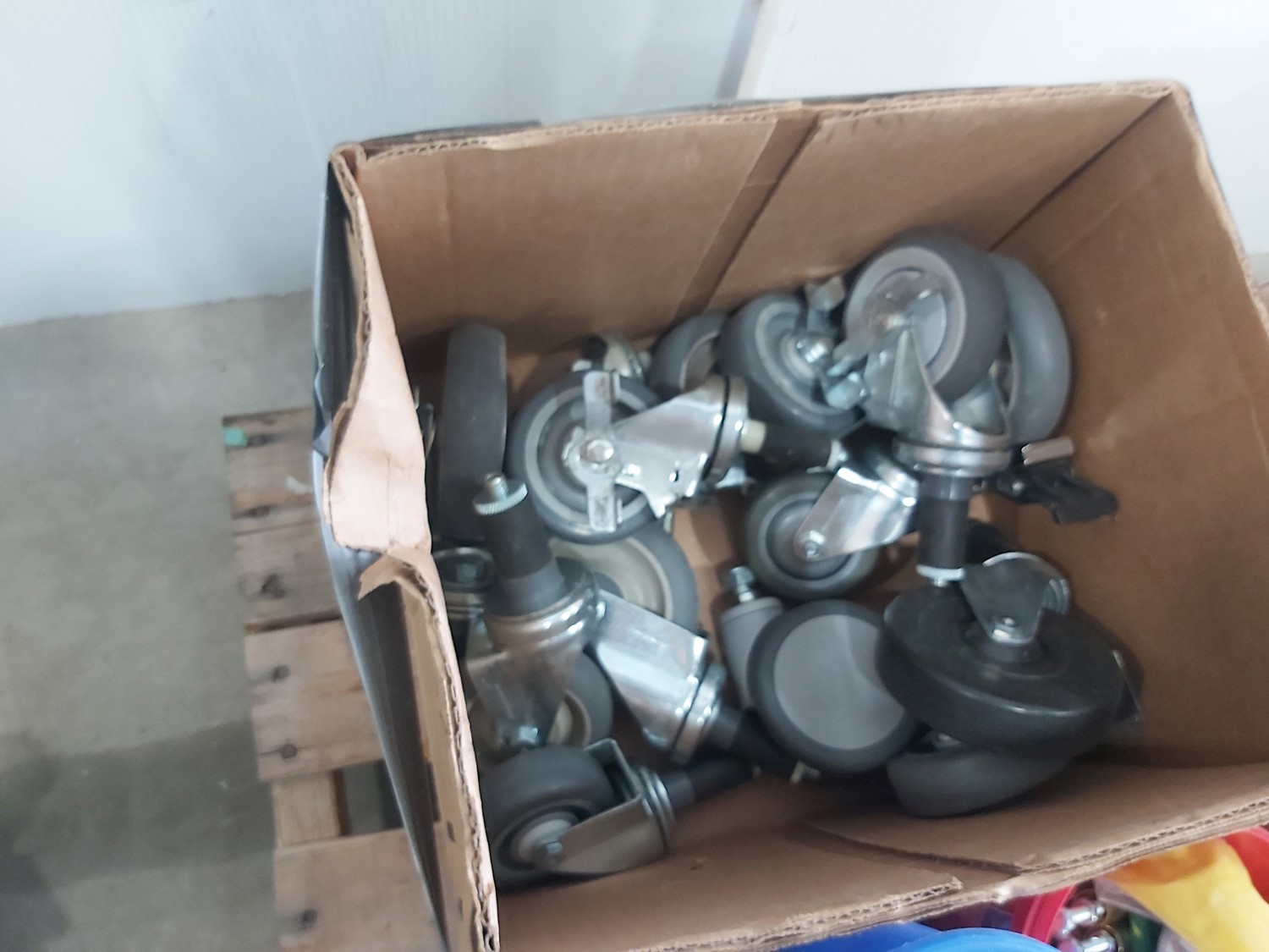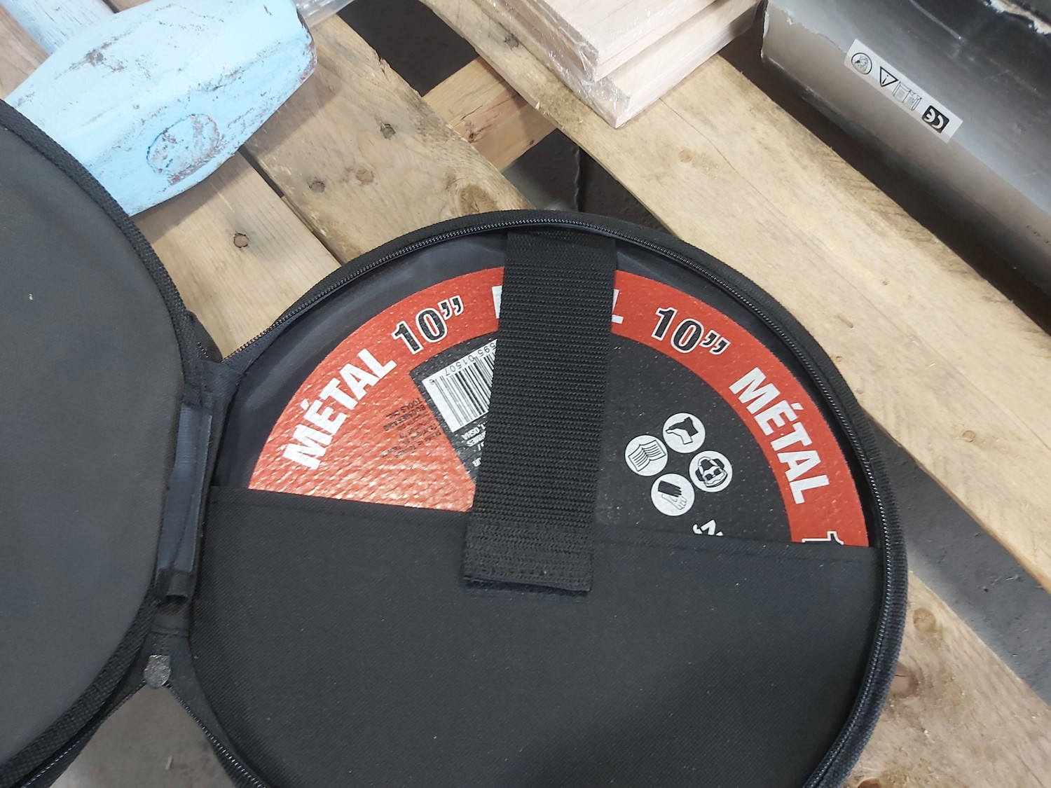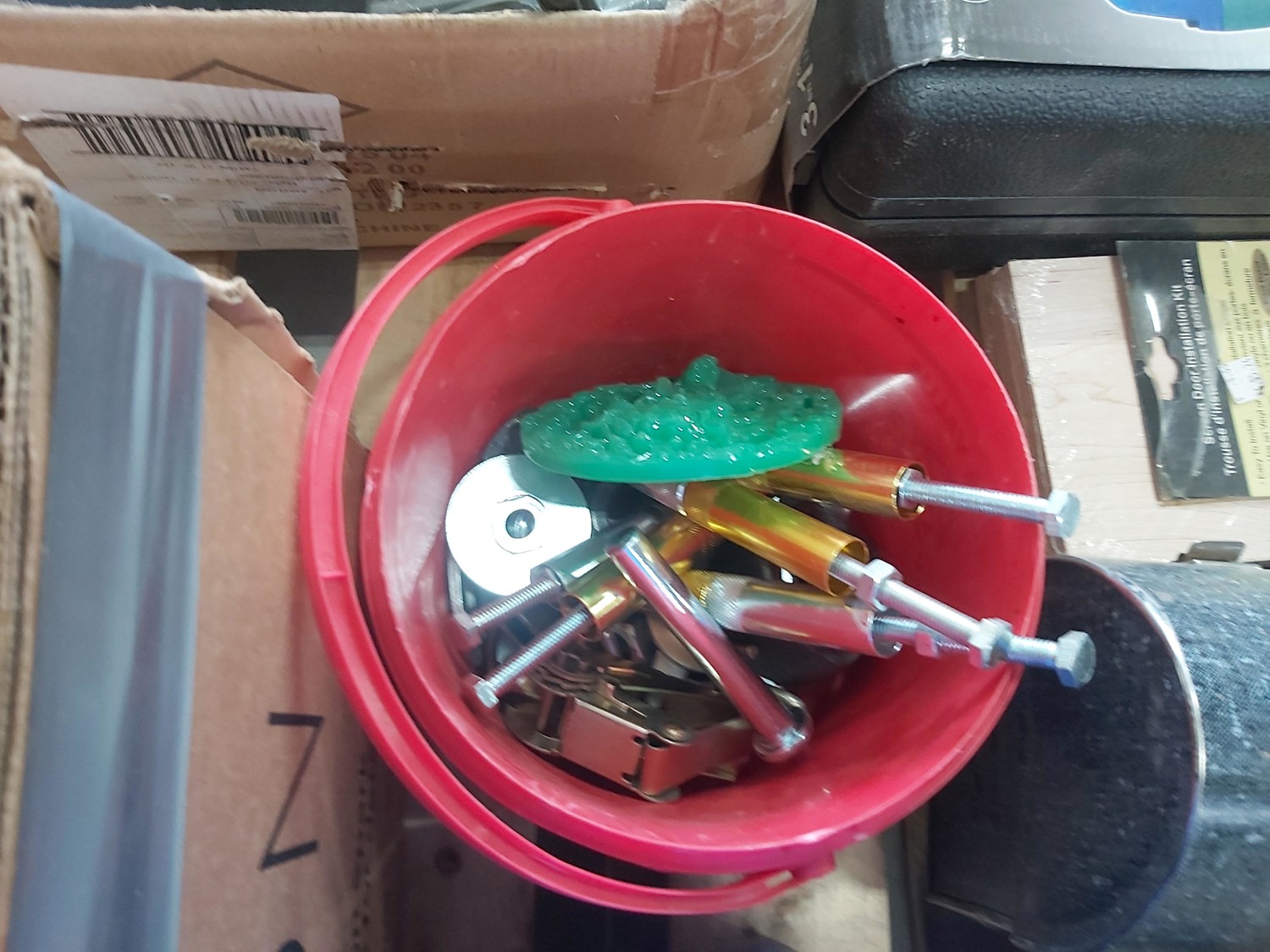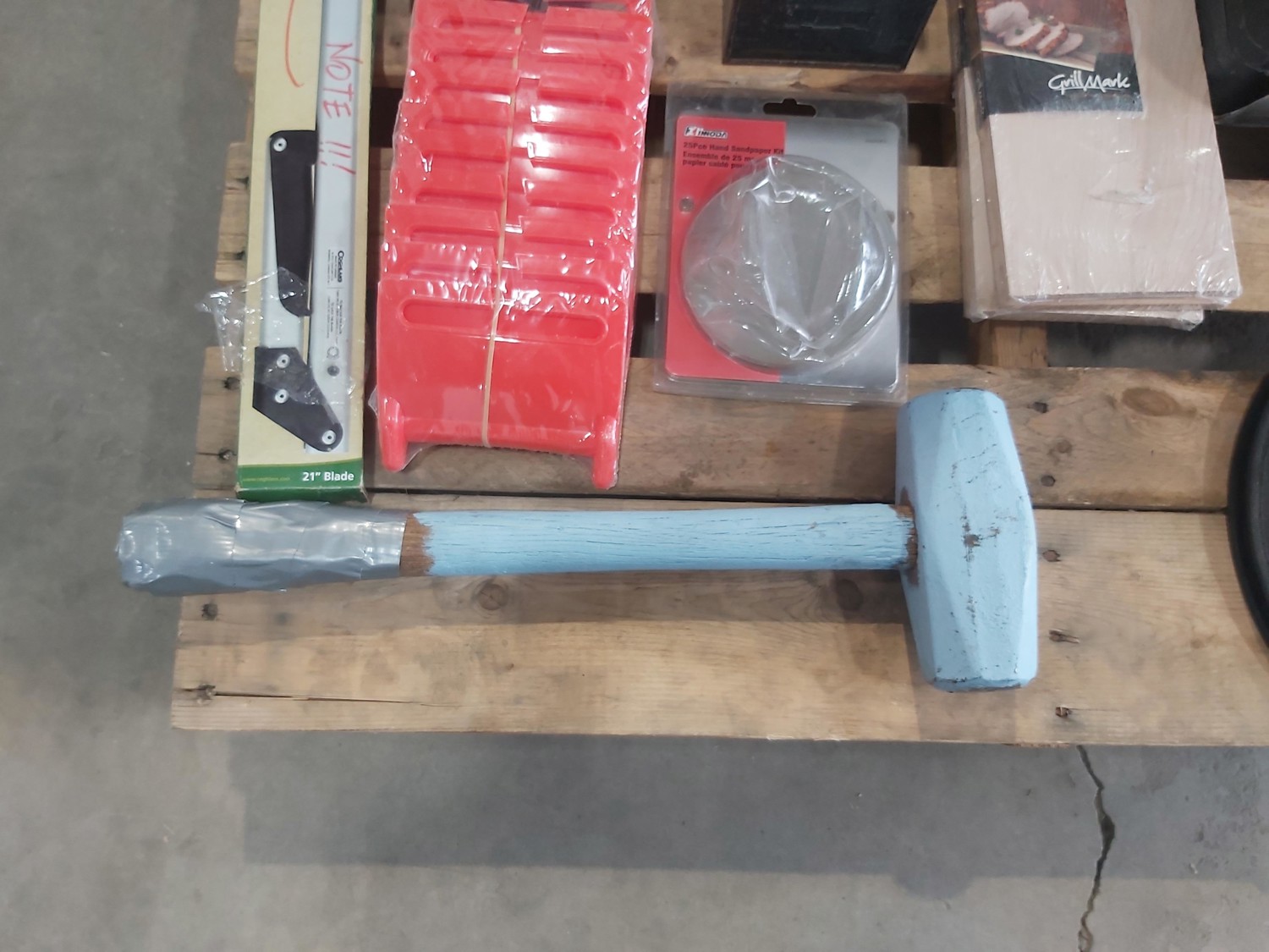 4 inch bench vise, 3-in-1 Magnesium air tool, 10 inch blade set, Titan drill bit set, dolly wheels, metal lunch box, corner web protectors, hardware
