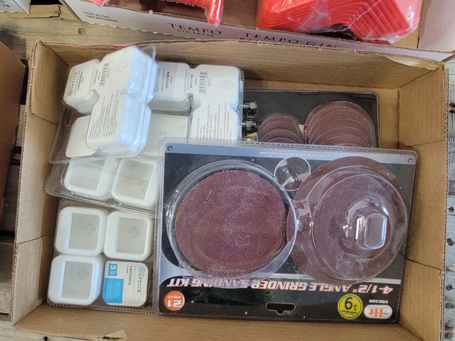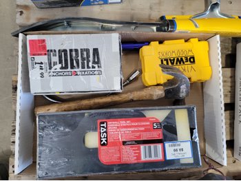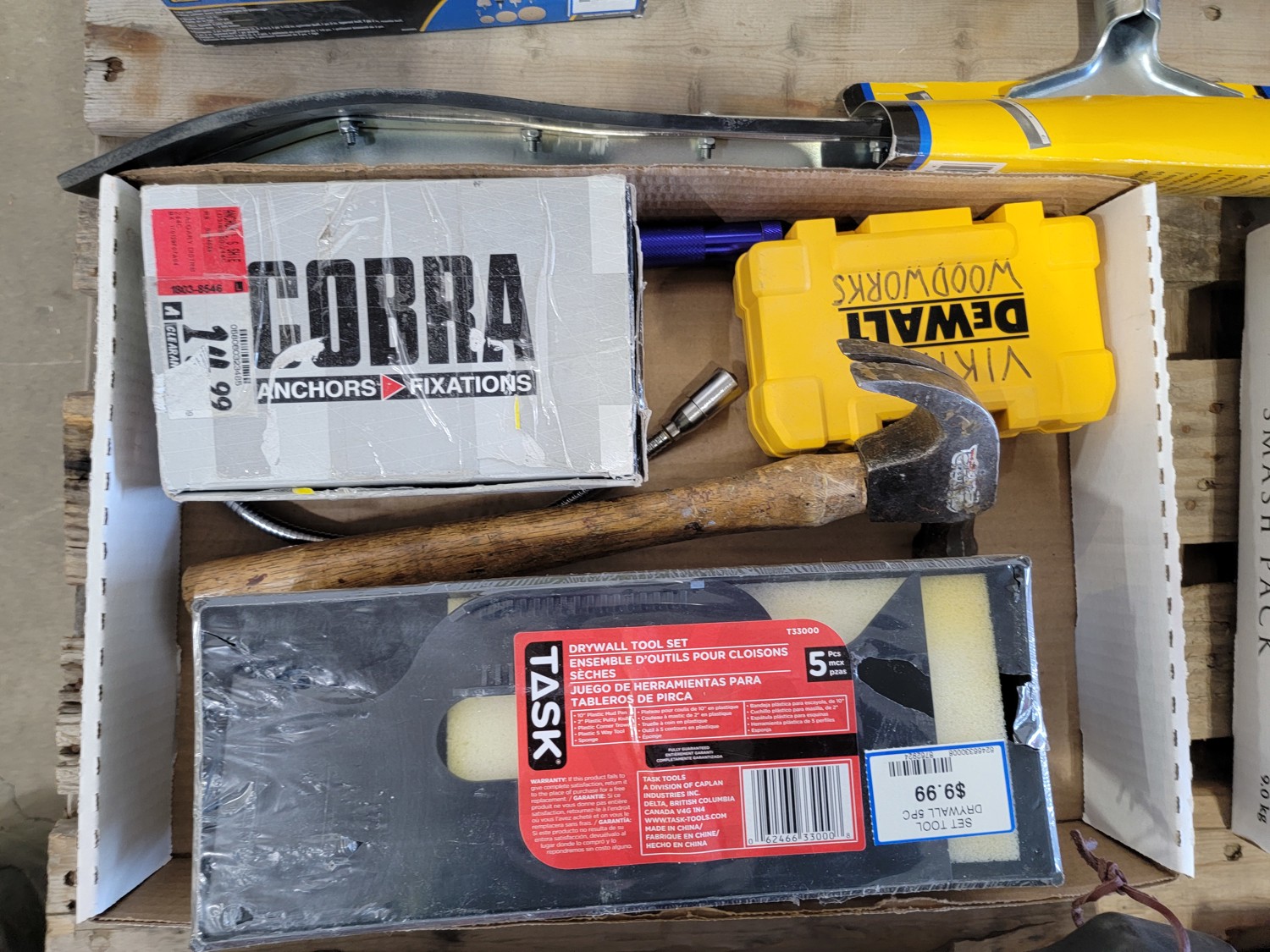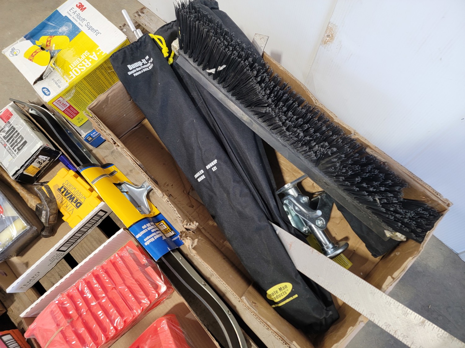 anchors, drywall tool set, buffing kit, ear plugs, corner web protector, squeegee blades