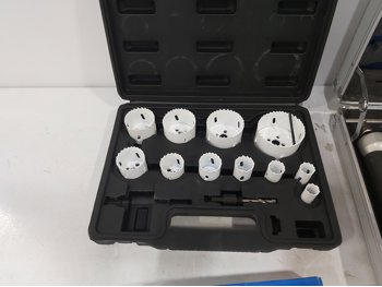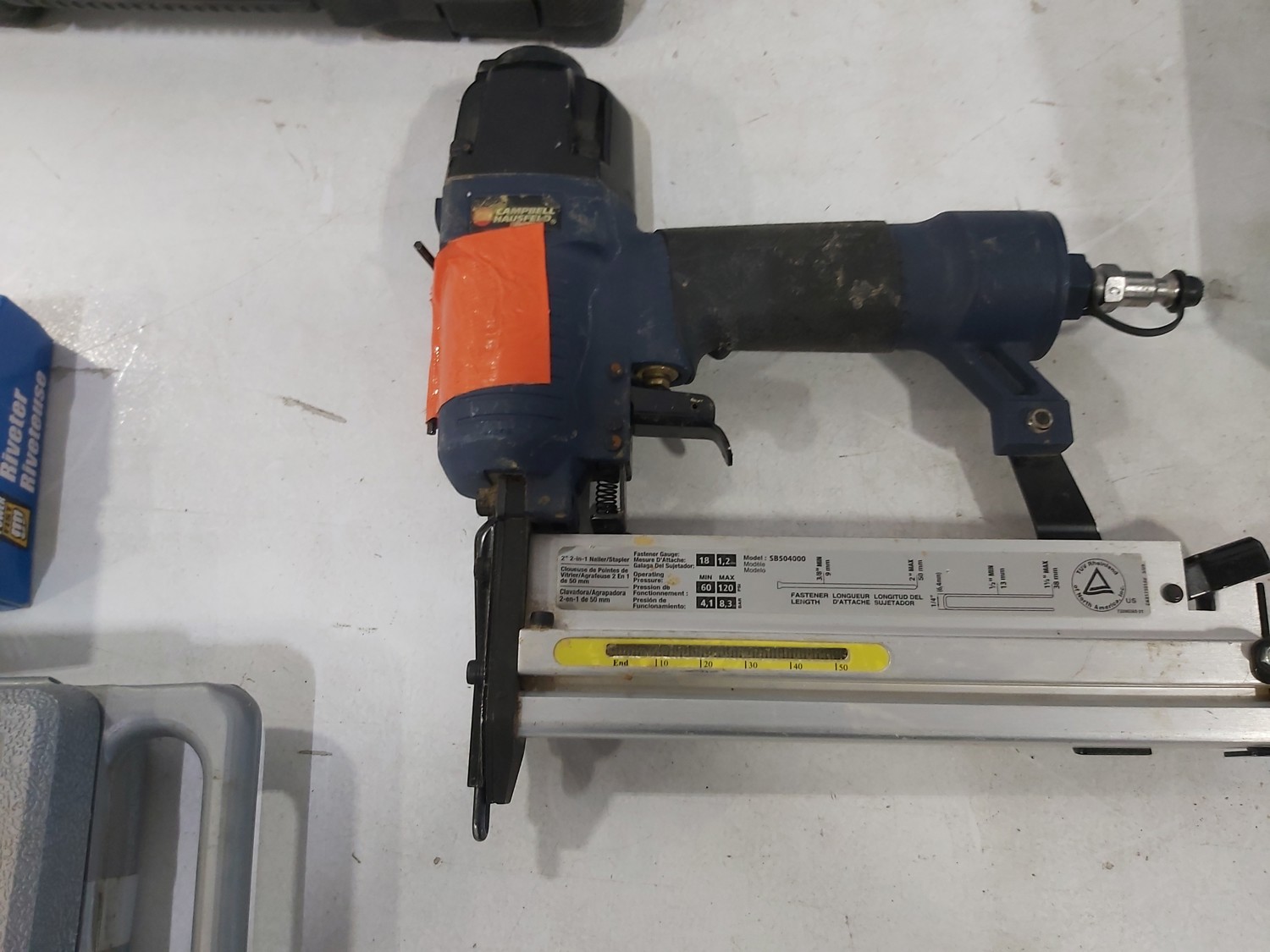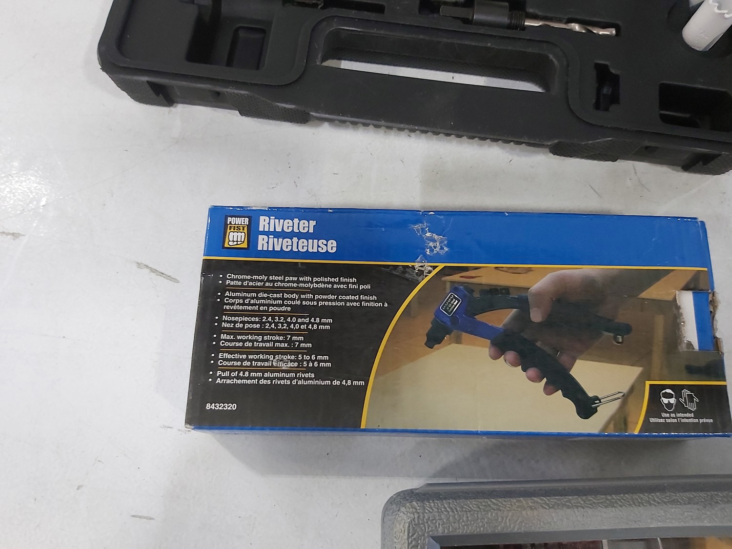 Powerfist rivet gun, 11 piece hole saw kit, (2) air powered staple guns