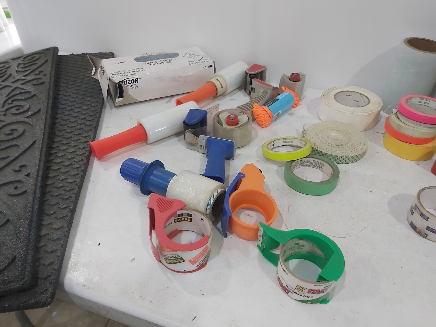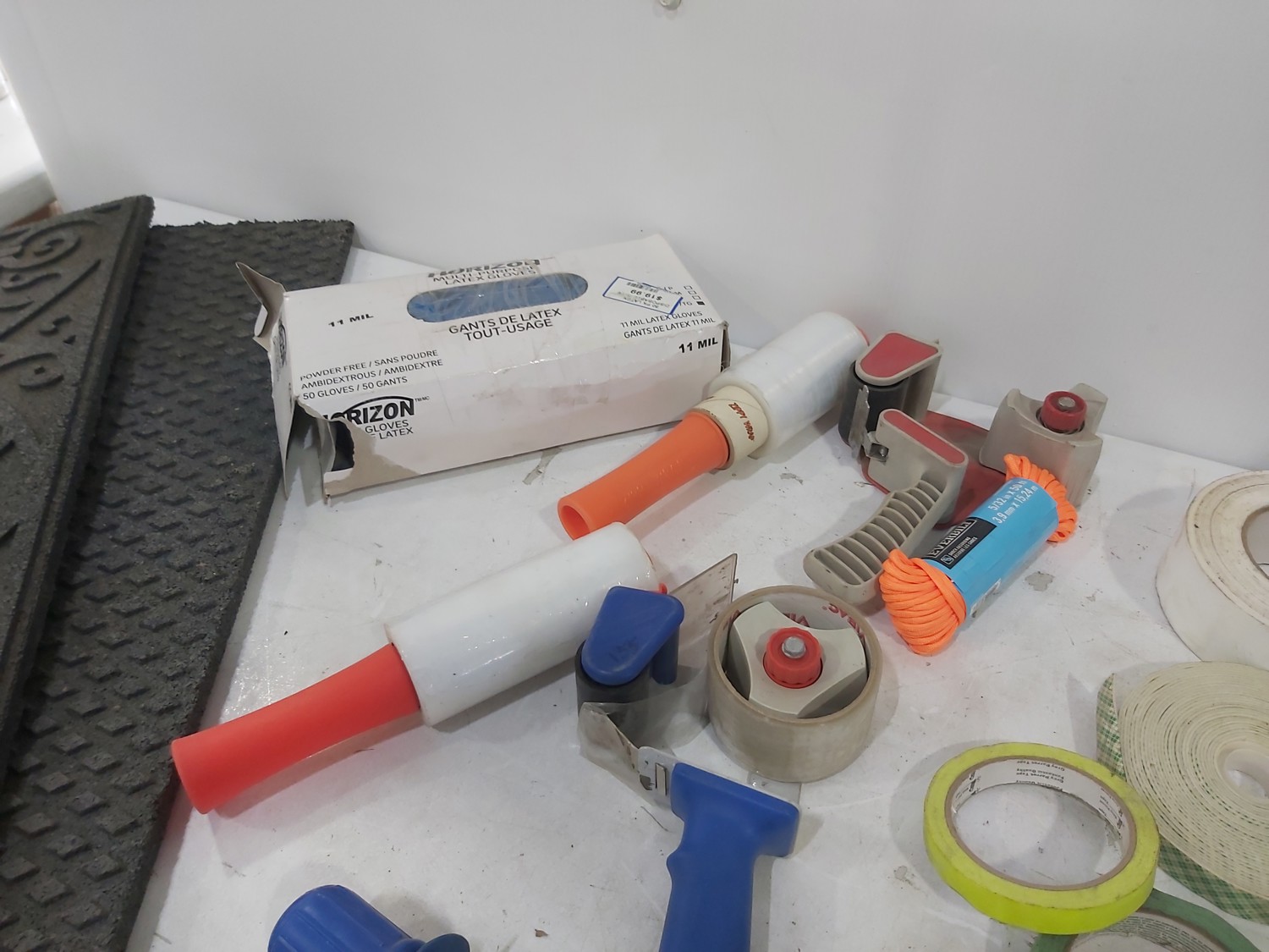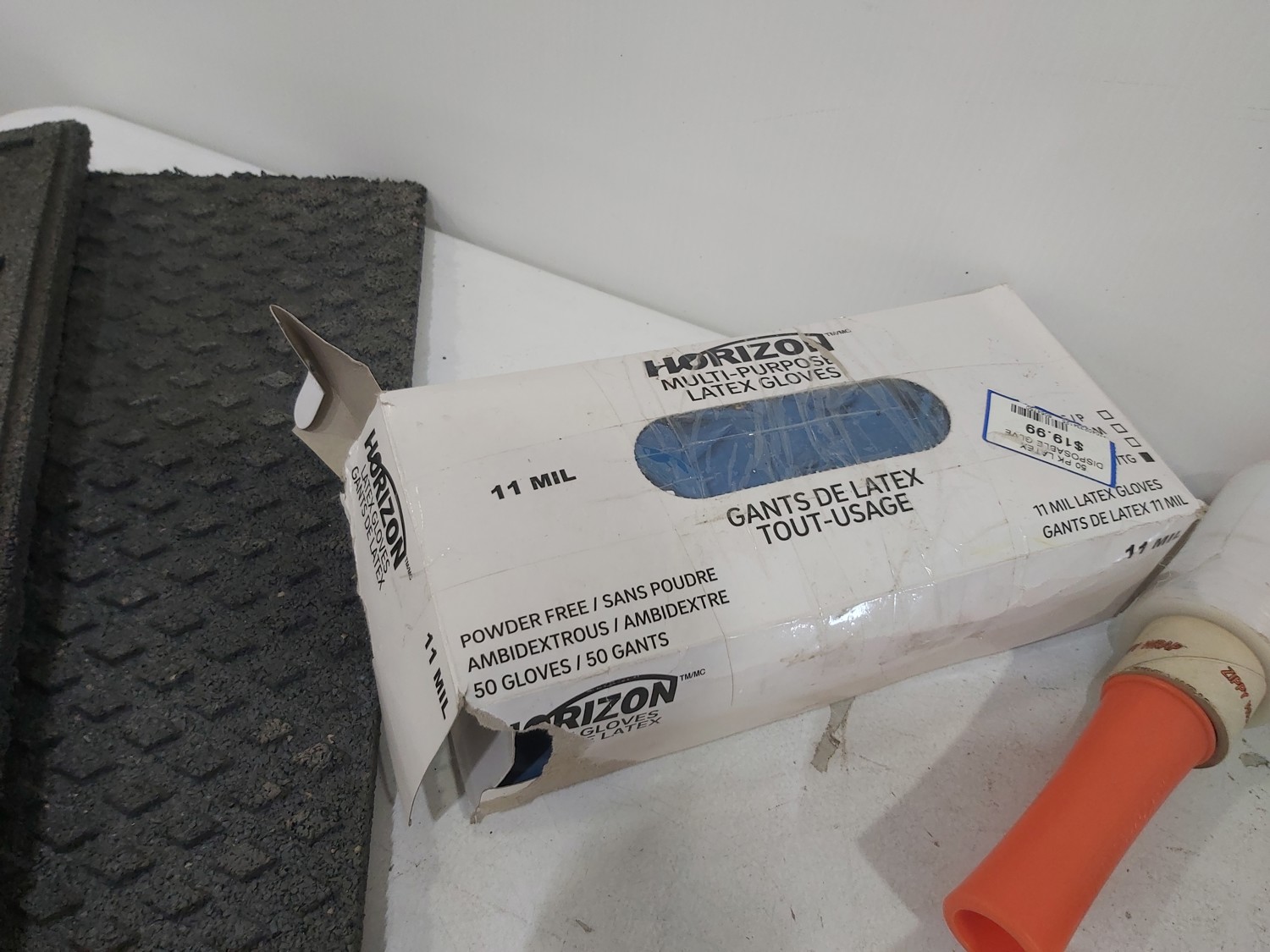 1181 Qty of Tape, Latex Gloves, (2) Rubber Mats and Plastic Tote