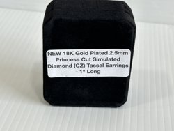 Smartlife 18K Gold Plated 2.5 mm Princess Cut Simulated Diamond (Cz) Tassel Earrings (Unused)
