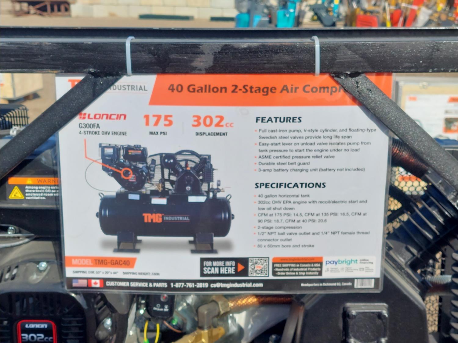 9 HP OHV Loncin engine, horizontal tank, 18.7 CFM @ 90 PSI