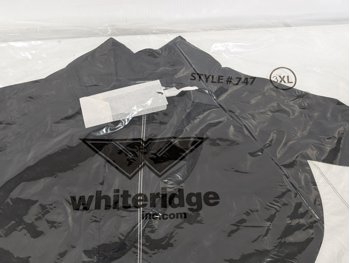 Style 747, 3 layered bonded soft shell, hidden right chest pocket & side zippers, reflective trim front and back, wind and water resistant, underarm ventilation, drop tail with waist drawstring, stretch knit storm cuffs