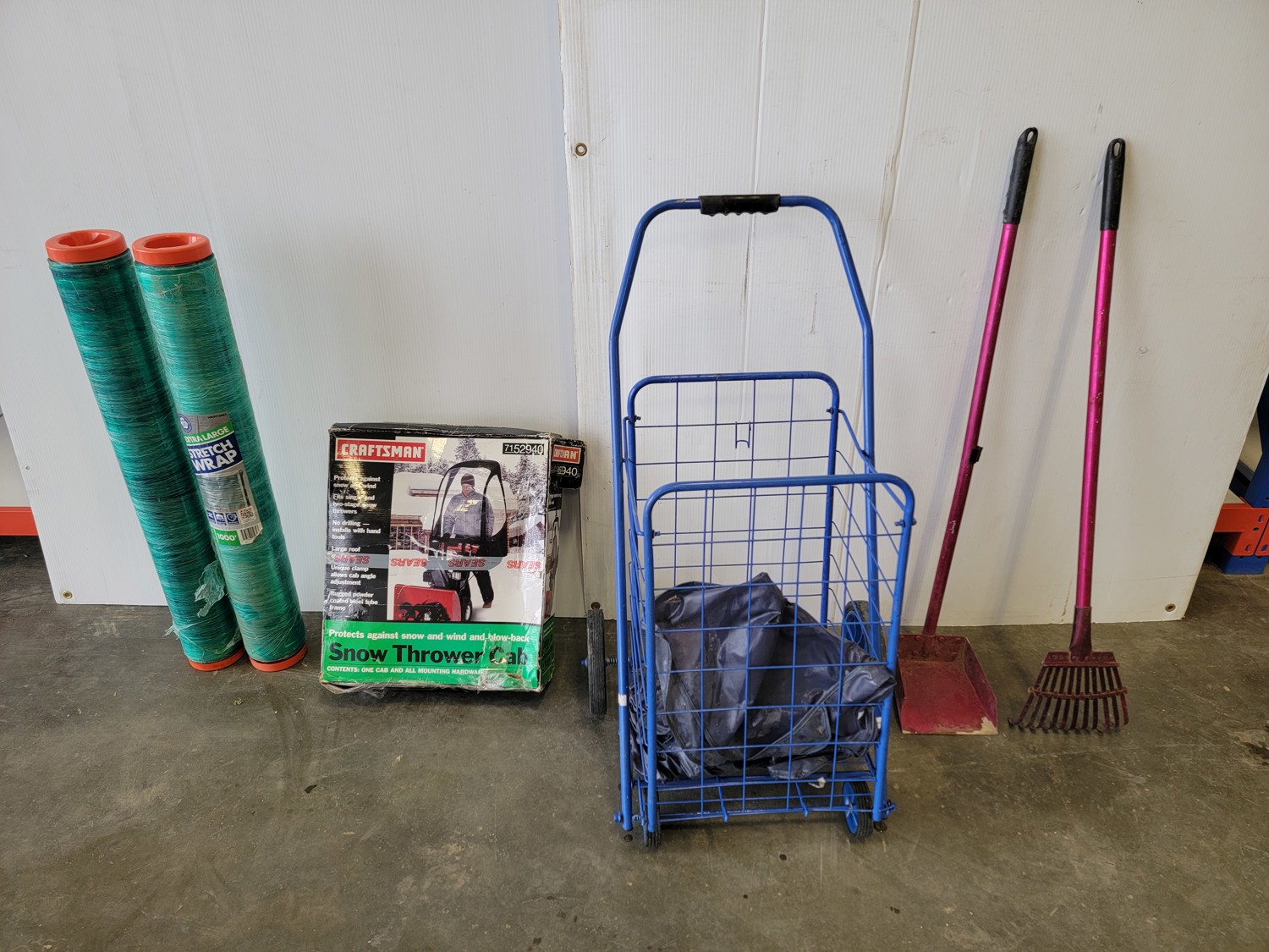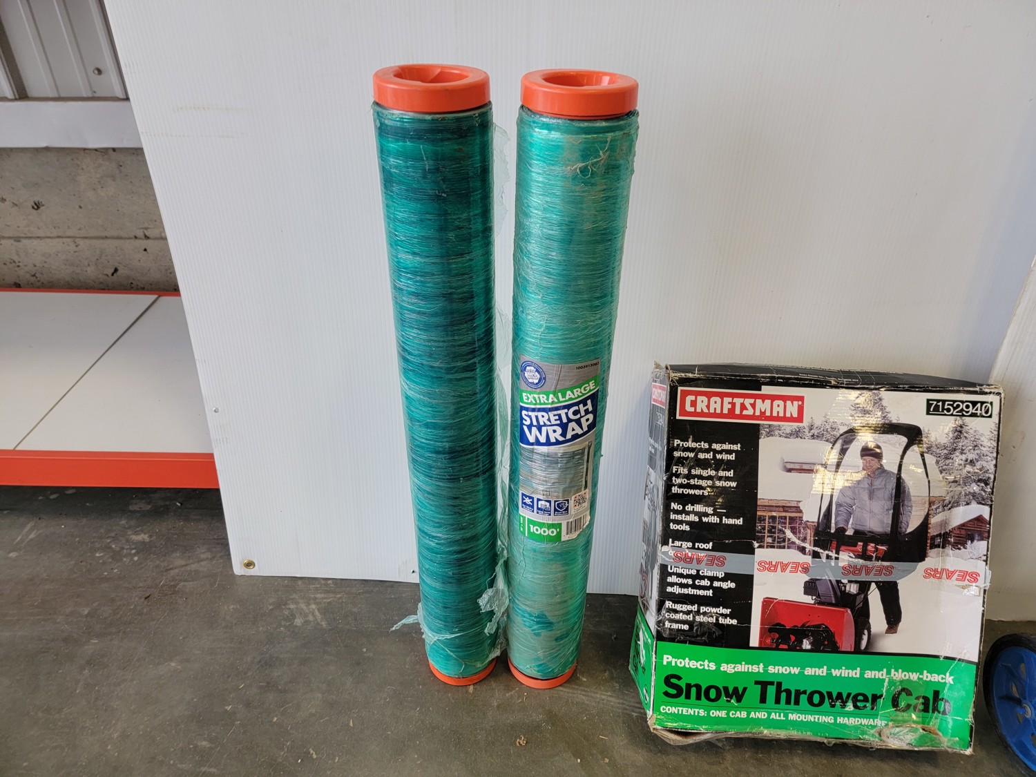 Craftsman Snow Thrower Cab, Folding Utility Cart and (2) Rolls of Stretch Wrap