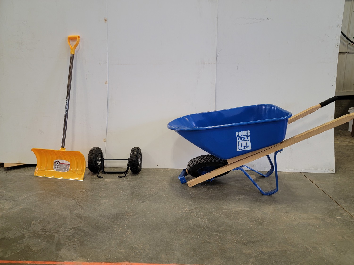 Powerfist Wheelbarrow, Shovel and Set of Wheels