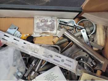 24 inch x 35 inch rubber mats, bolts, screws, hinges, caster wheels