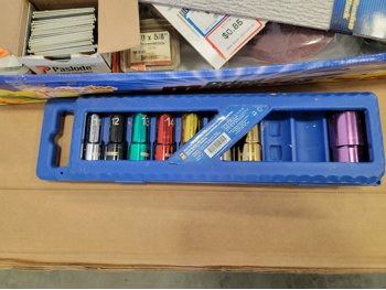 tools, recycling bin, screws, sockets