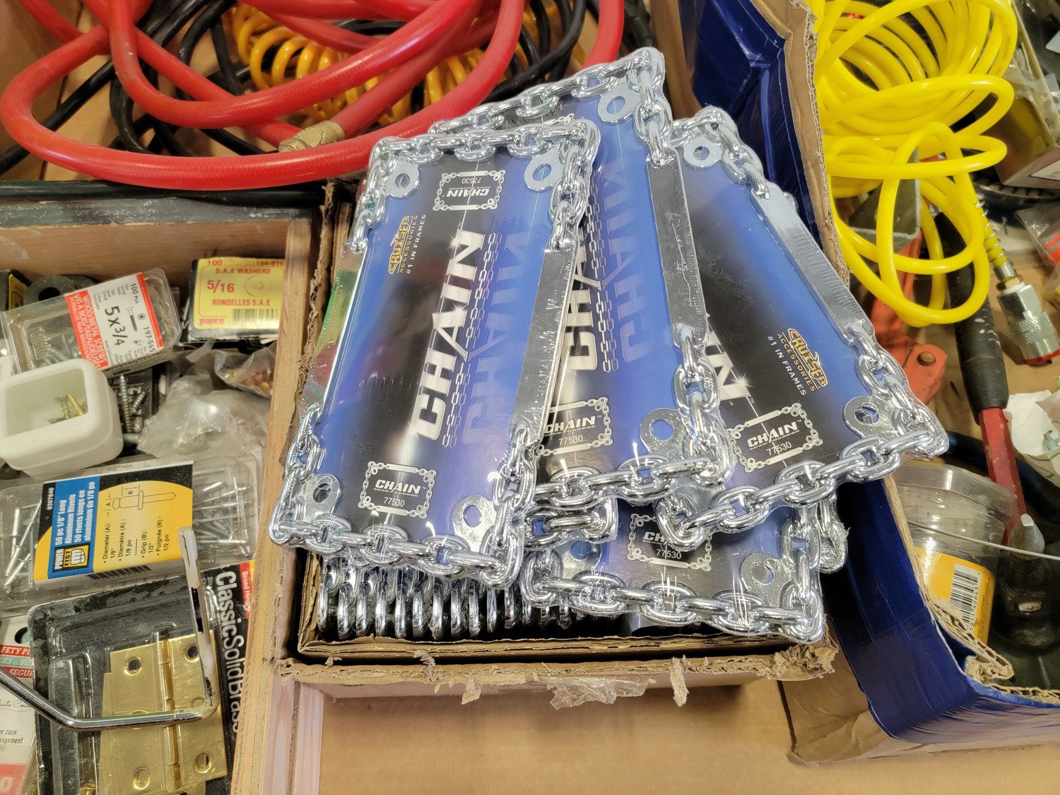 Qty of Shop Supplies, Chain License Plate Frames and Hardware