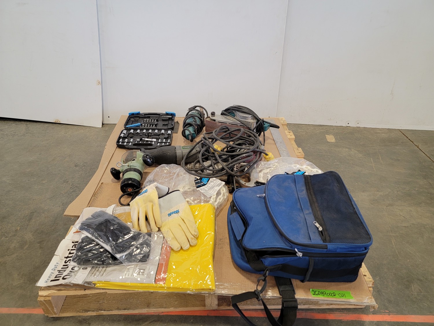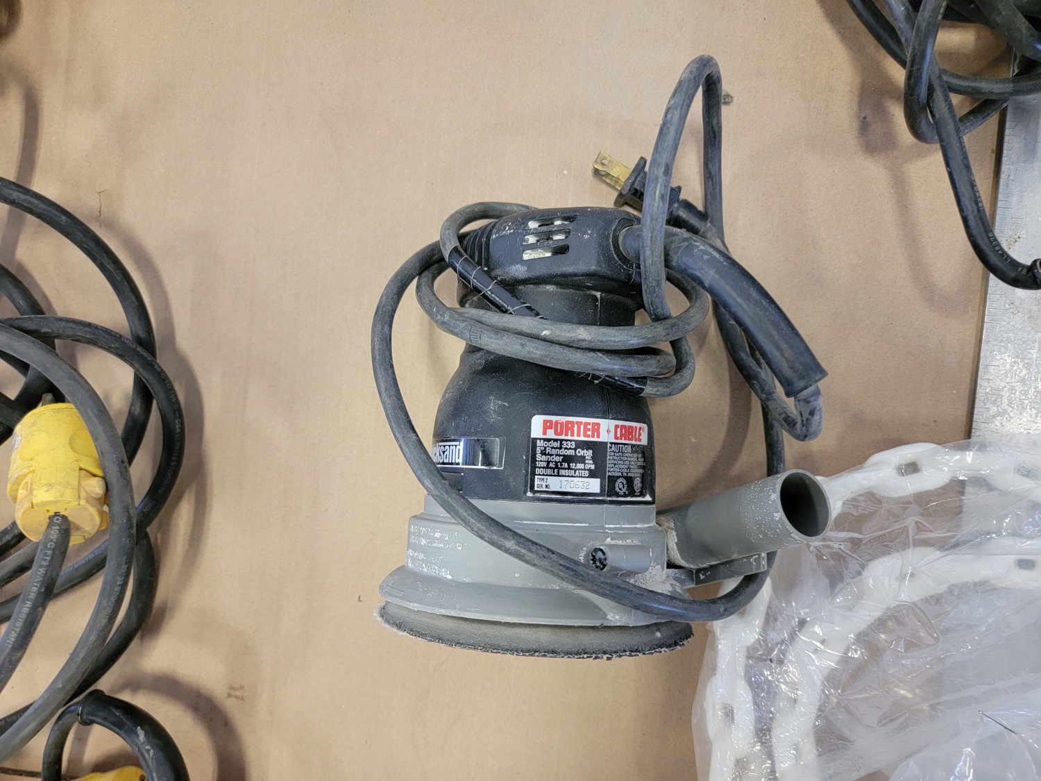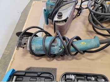 anchor chain, socket set, router, reciprocating saw, angle grinder, belt sander, 3/8 inch heavy duty drill, 5 inch random orbit sander