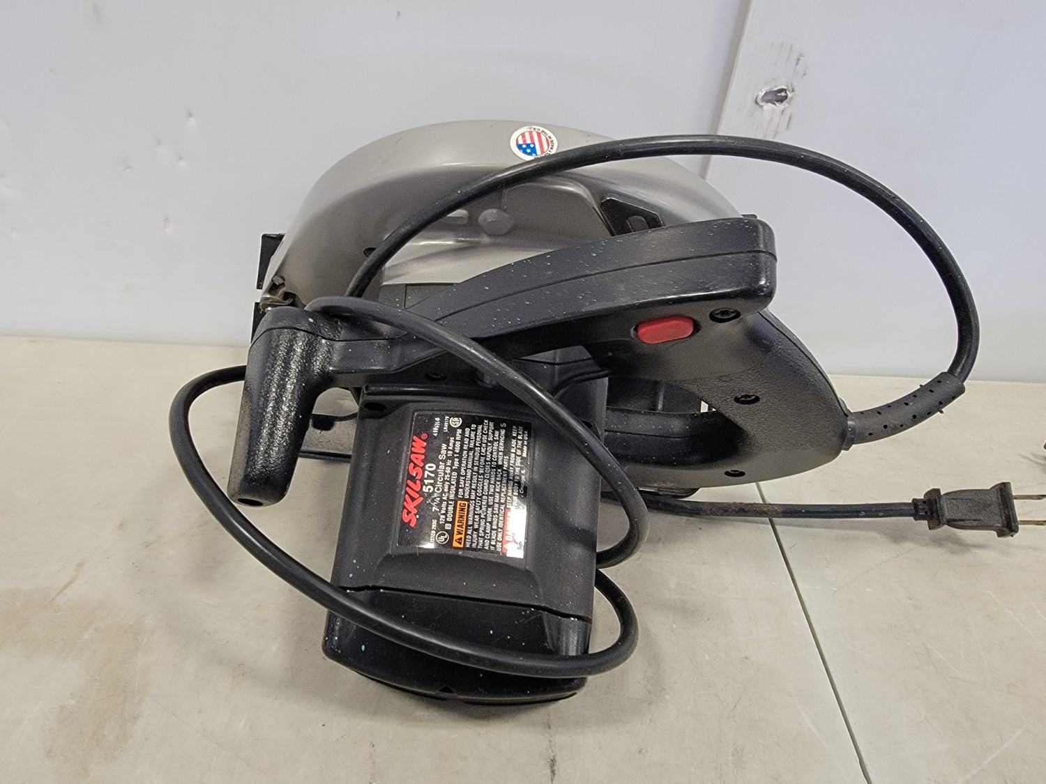Skilsaw 7-1/4 Inch Circular Saw, Powerfist Belt Sander and Ryobi Angle Grinder