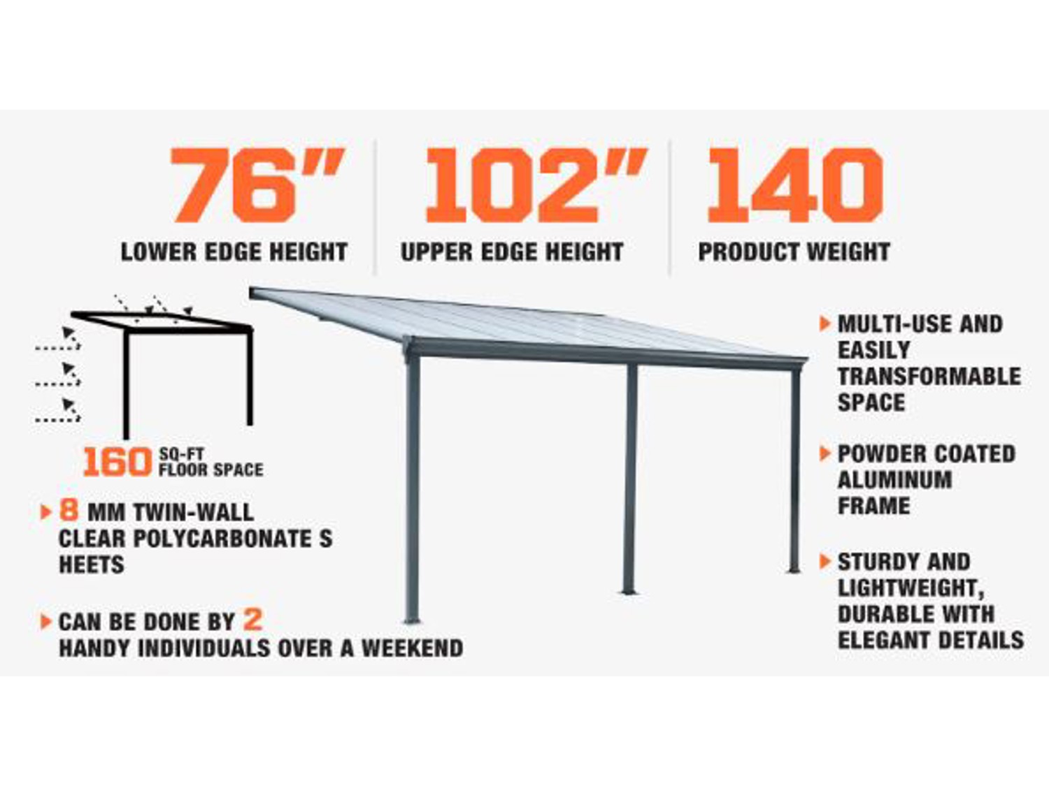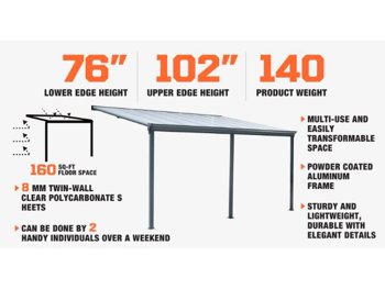 StanForge LPC16 Aluminum Patio Cover 10 Ft X 16 Ft with Clear Panels (Unused)