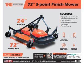 StanForge TFN72 72 Inch Tow-Behind 3-Point Hitch Finish Mower (Unused)