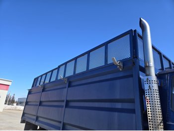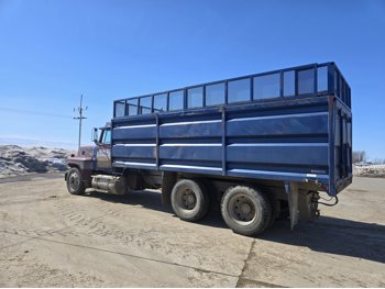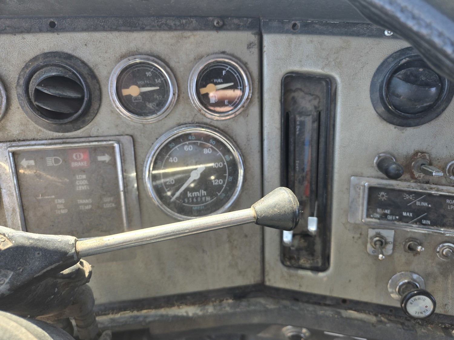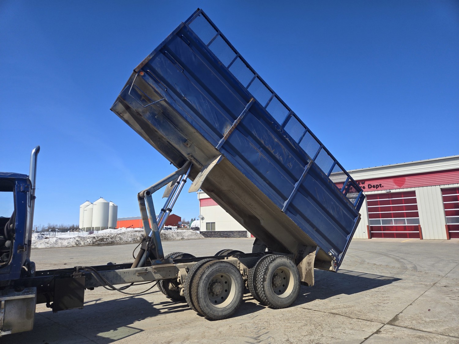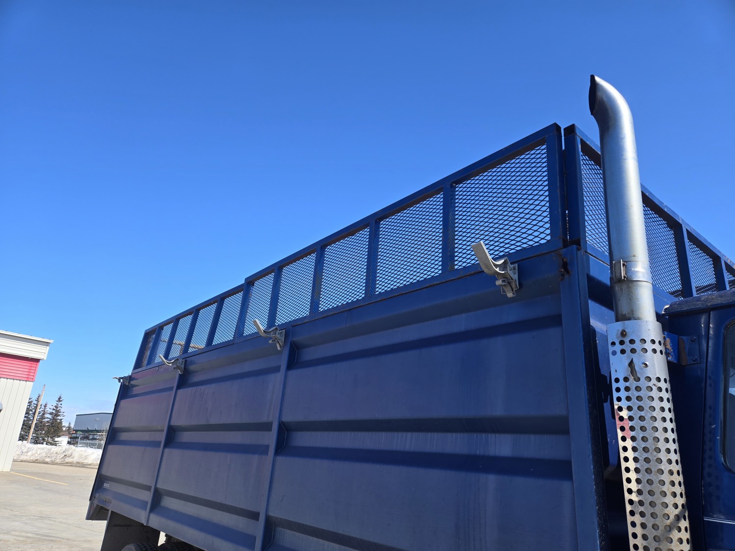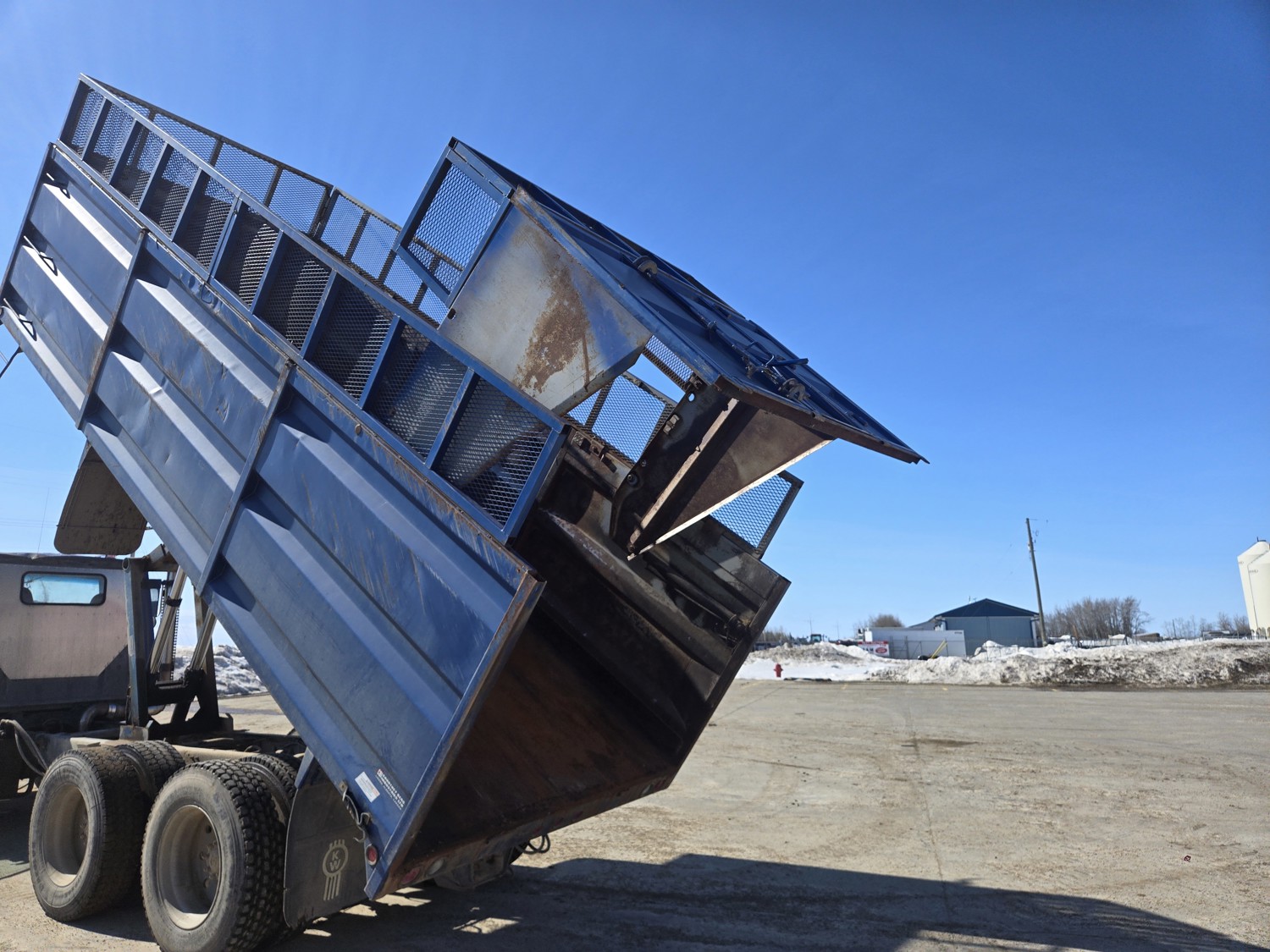 14.6 L diesel engine, engine brake, 18 speed manual transmission, 2-way radio, 21 ft box, hoist, 5ft sides with 2ft extensions, hyd rear end gate