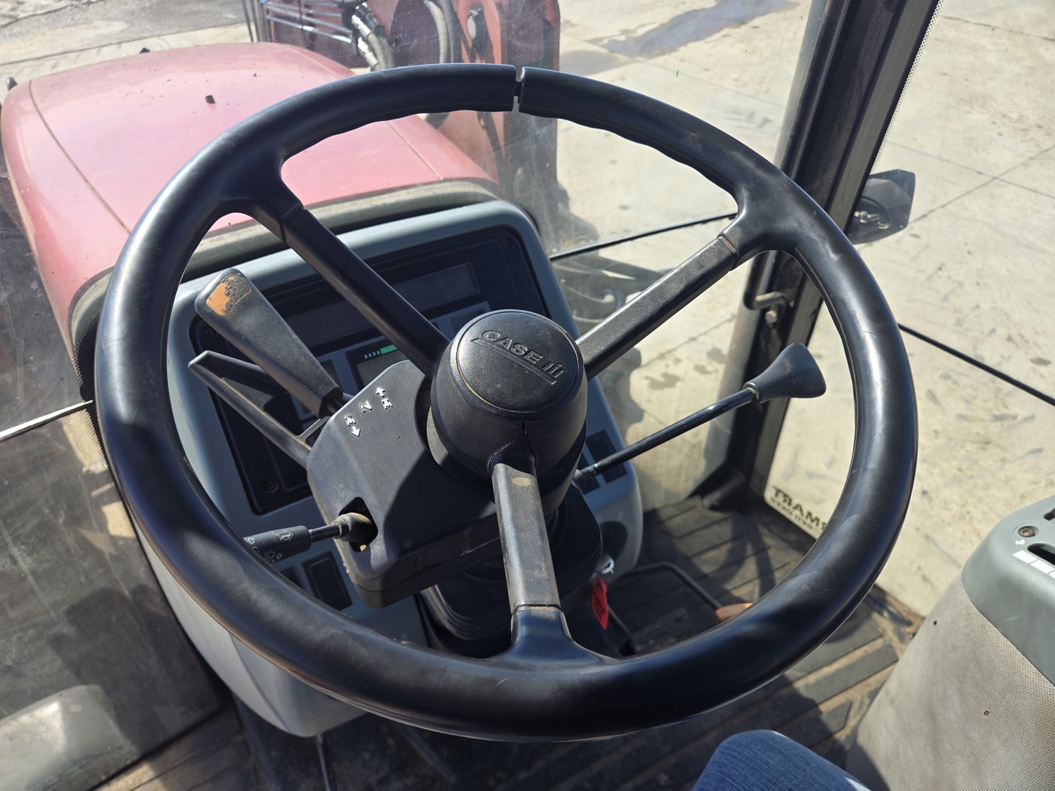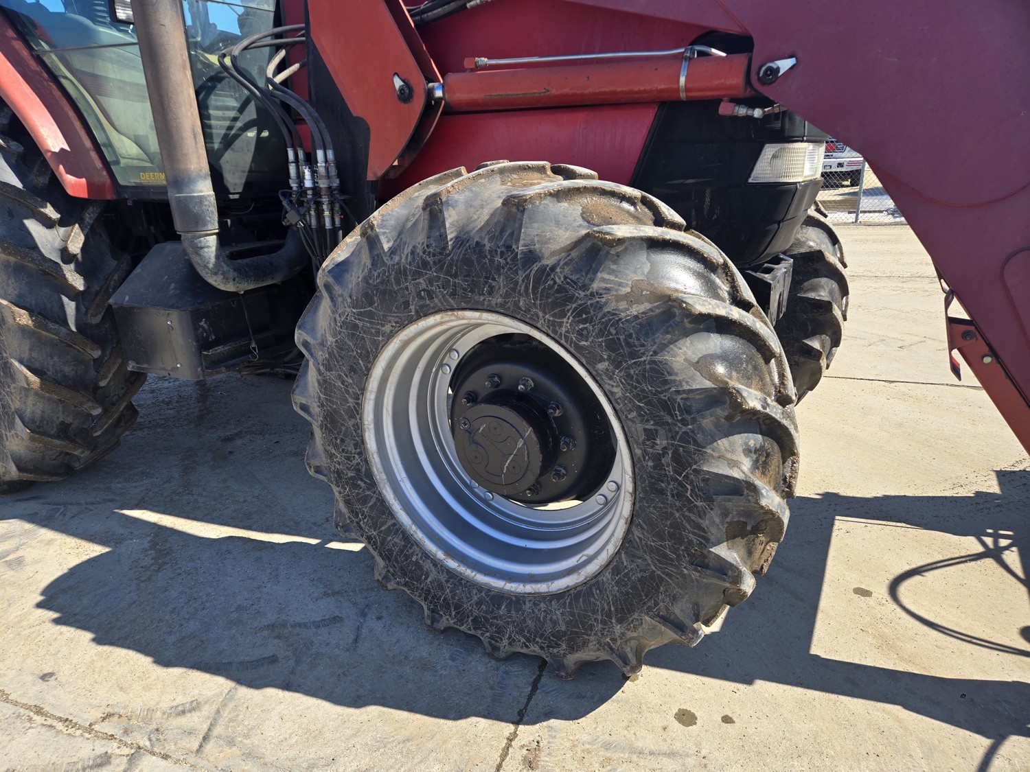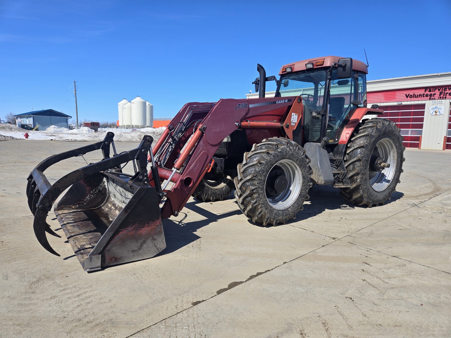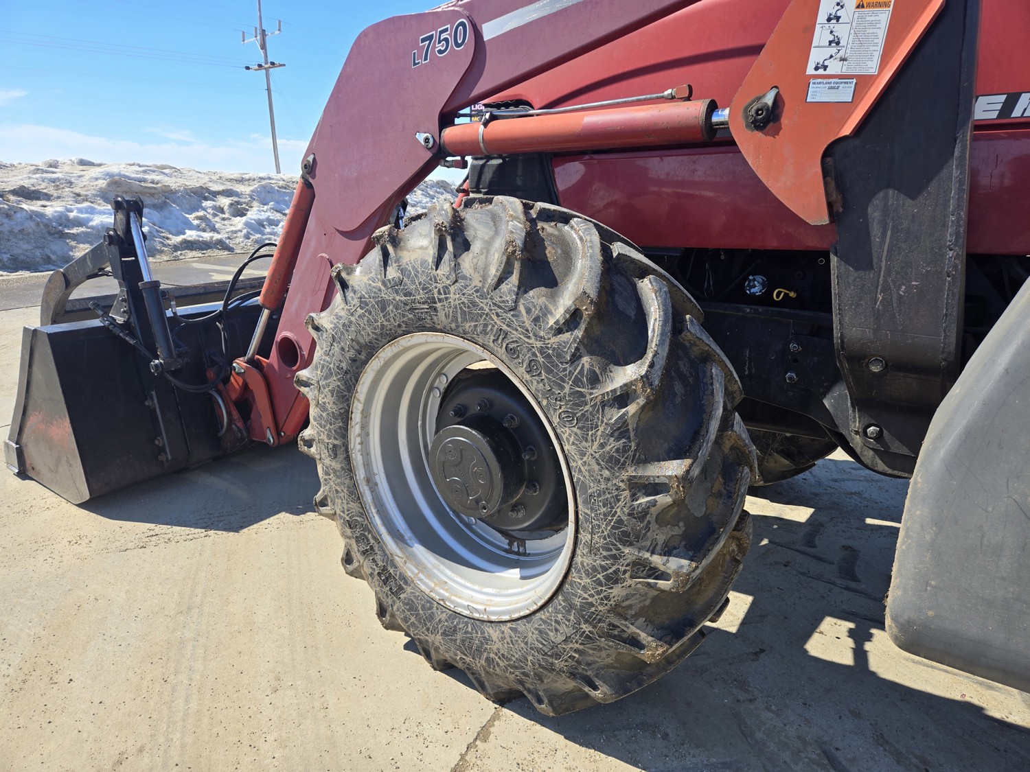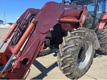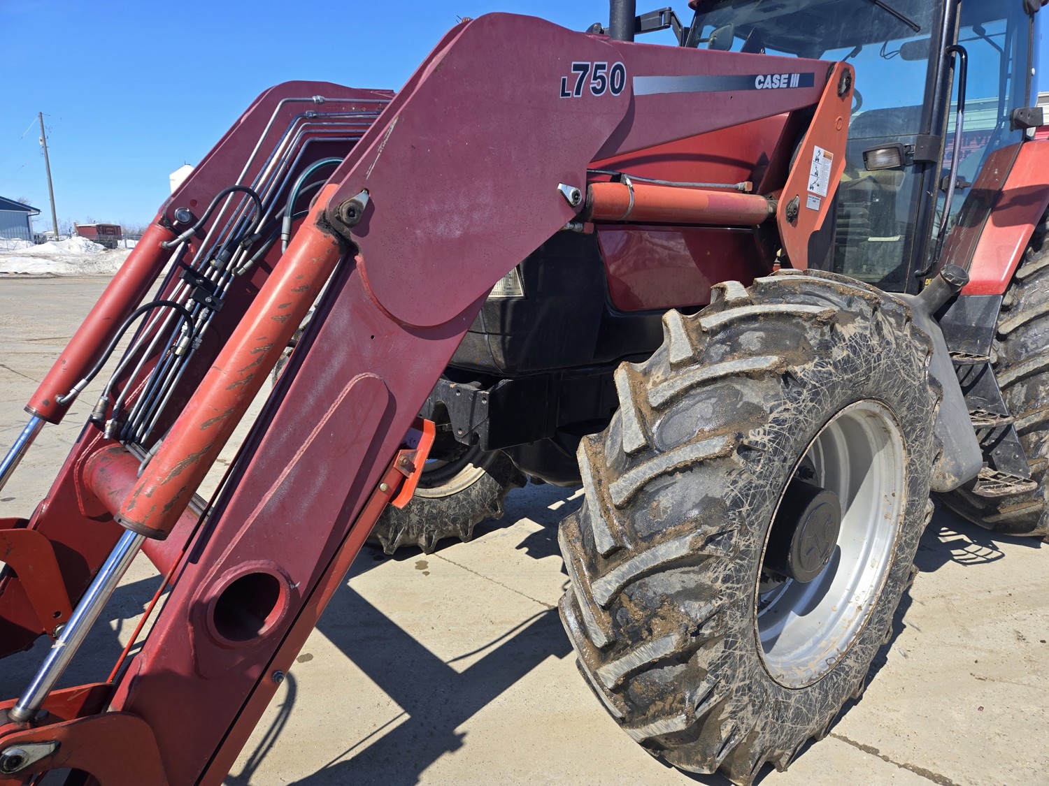Case IH L750 loader, Q/A, grapple, mid mount hydraulic connection, TURBOCHARGED 5.9 L 6 cylinder diesel engine, 130 PTO HP, 16 speed partial power shift transmission, 31.6 GPM hydraulic pump, cab, left hand reverser, rear differential lock, joystick, A/C, radio, 1000 PTO, 3 rear hydraulic outlets, 16.9-30 front tires, 520/85R42 rear tires