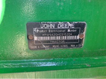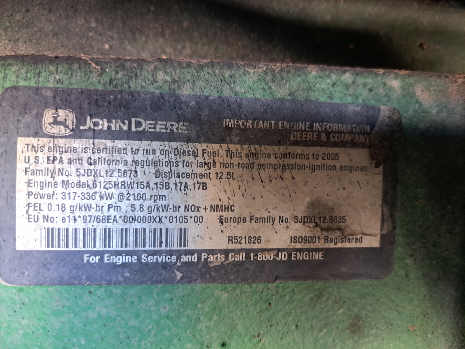12.5 L 6 cylinder 425 HP, engine, 24 speed partial power shift transmission, cab, A/C, radio, air ride seat, buddy seat, 4 rear hydraulic outlets, 1 rear auxilary hydraulic outlets, front wheel weights, rear wheel weights, 710/70R42 tires, Full Weight package