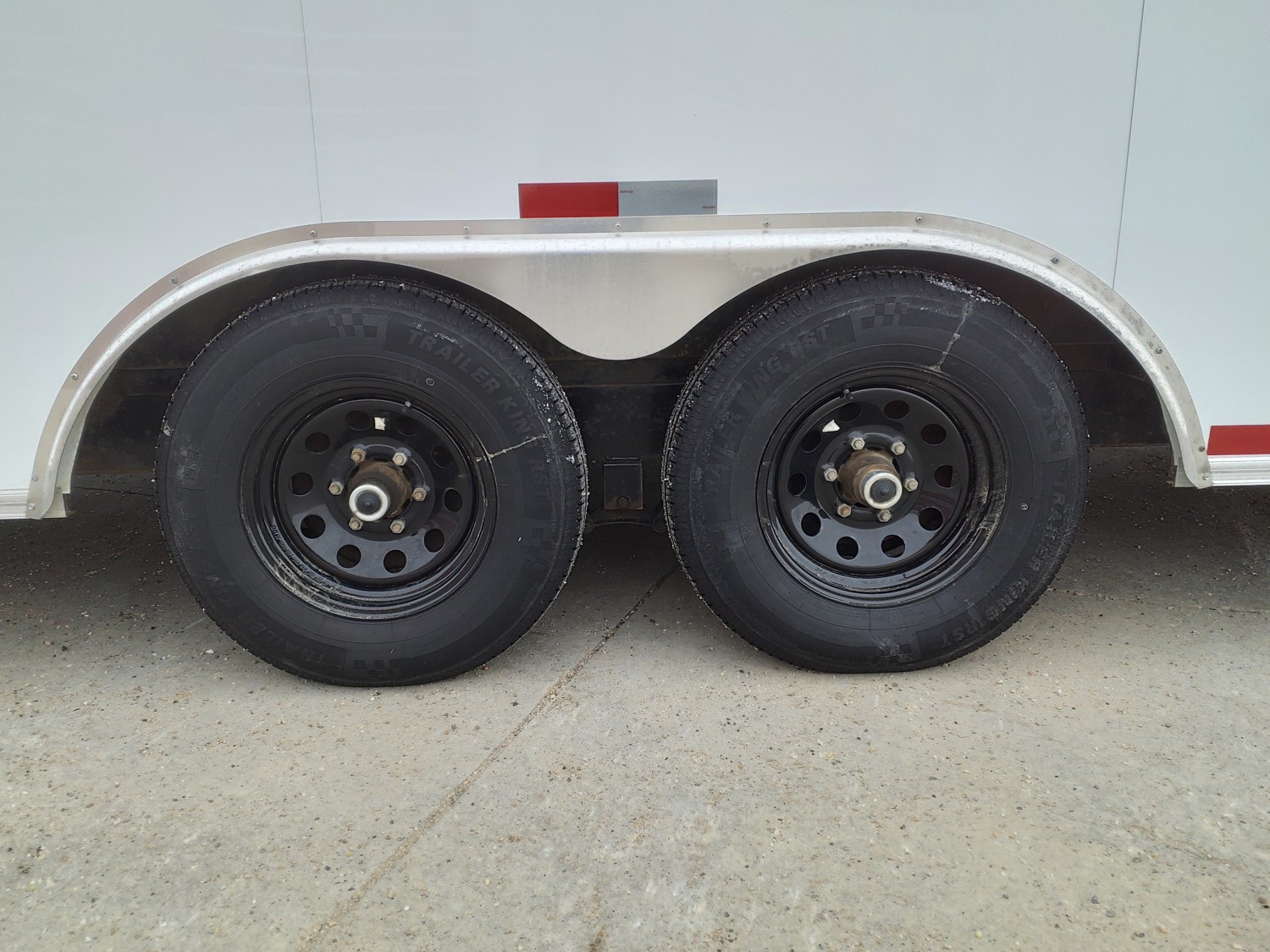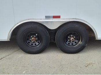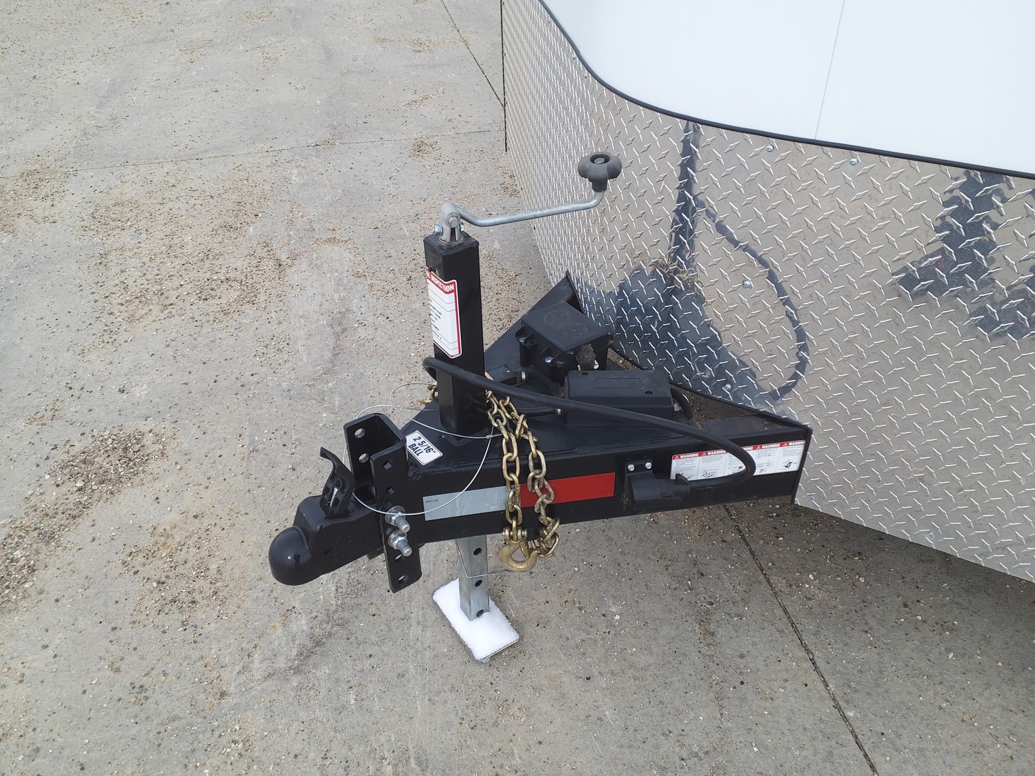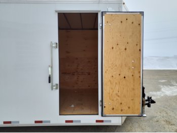 86 inch interior width, 96 inch interior height, 2-5/16 inch ball hitch, side door, fold down door, spring suspension, 225/75R15 tires