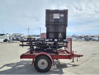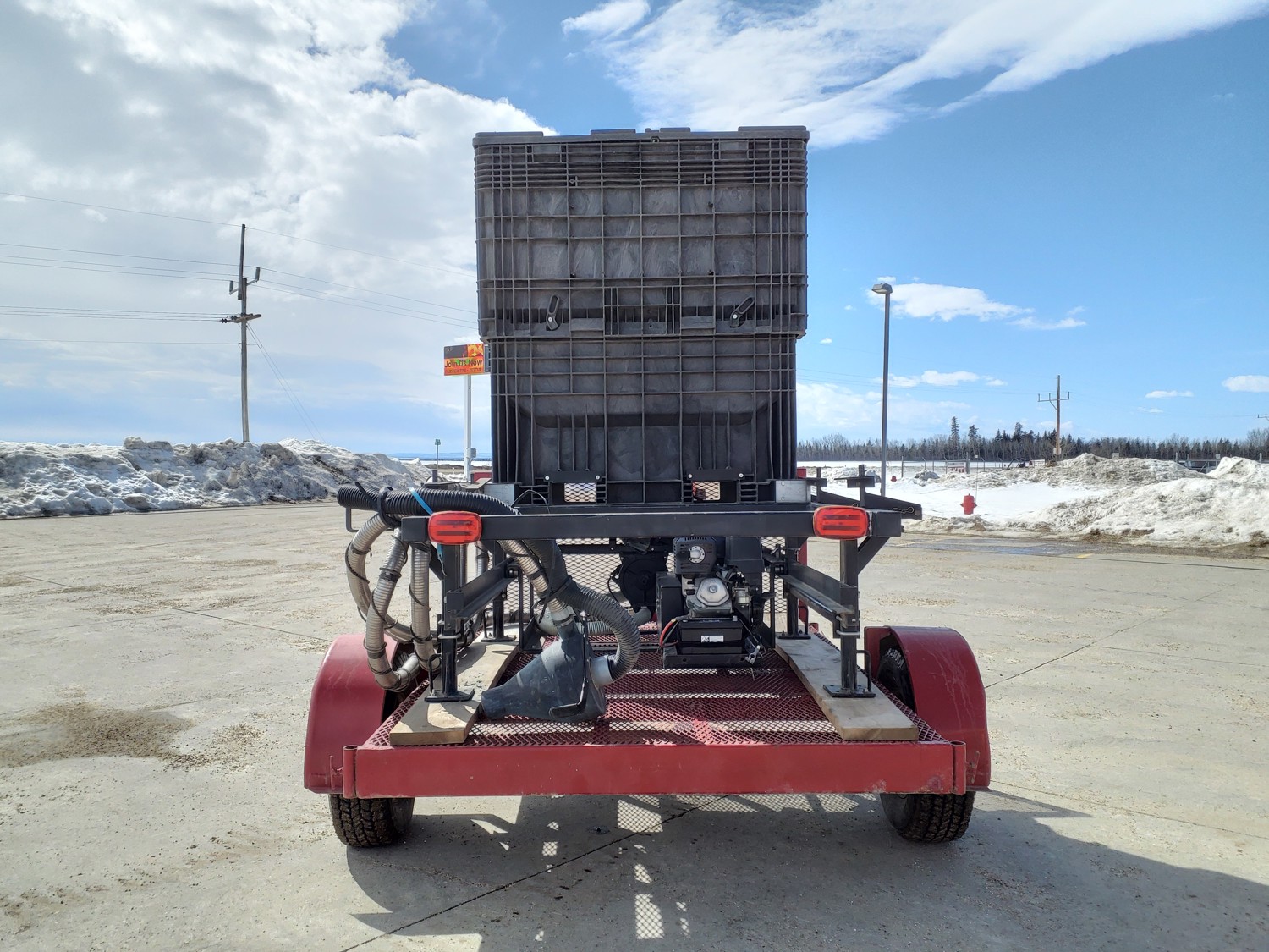 Vac system, holds 1 mini bag, pioneer tub, Honda GX390 gas engine, electric start, ball hitch, spring suspension, 265/75R16 tires