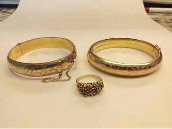 (1) Family Ring, & (2) Gold Plated Bracelets