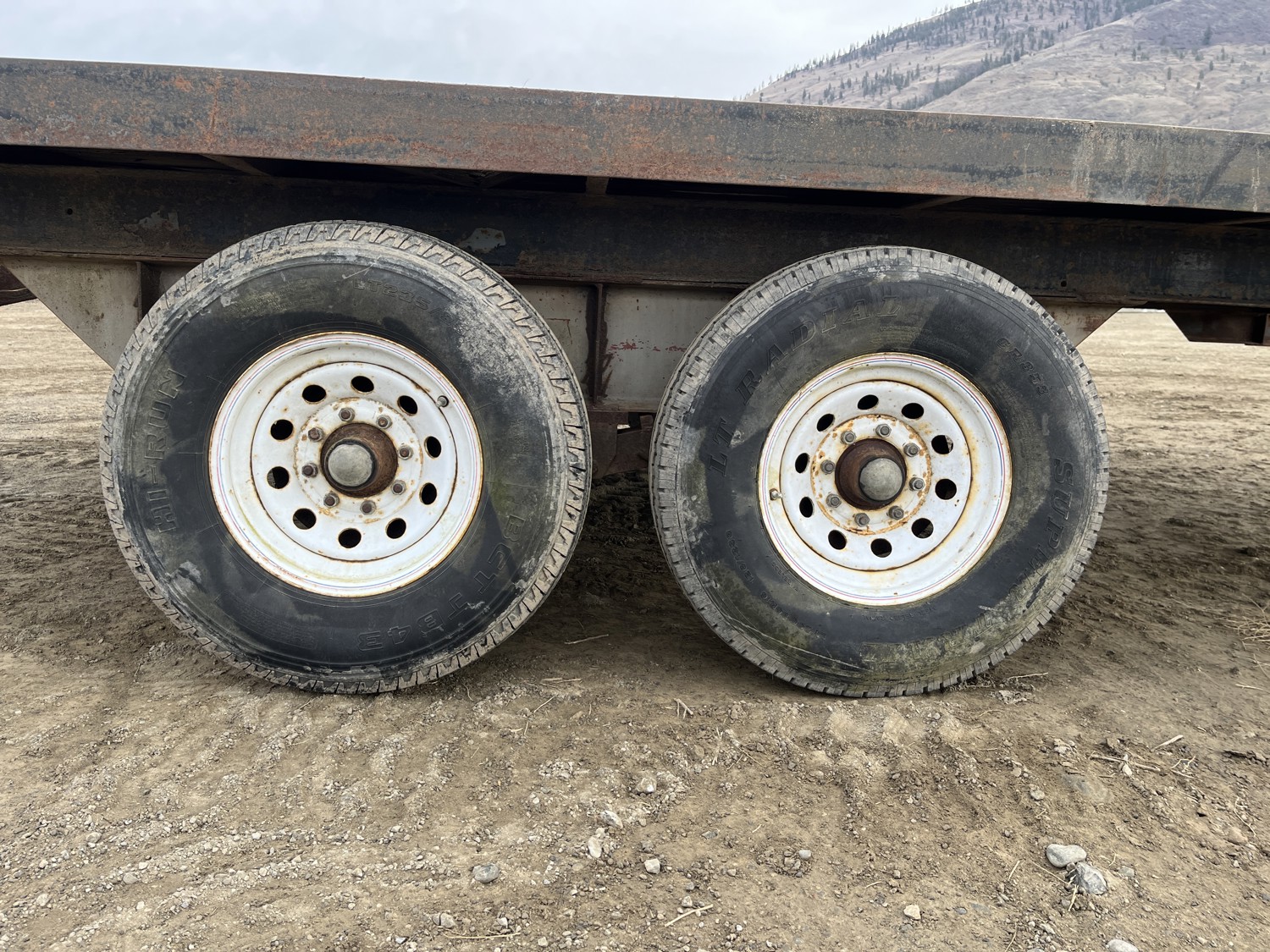 102 inch wide deck, 31 inch beaver tails, wood deck, electric brakes, torsion suspension, ball hitch, stake pockets, 10000 lb axles, 235/85R16 tires
