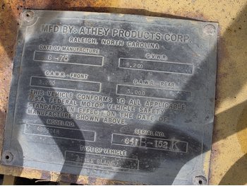 10 Ft moldboard, Ford 4 cylinder model 254DF engine, new water pump, new fan belt, new starter, new alternator, new brakes, new master cylinder, and basic service of fluids, and filters, working machine.