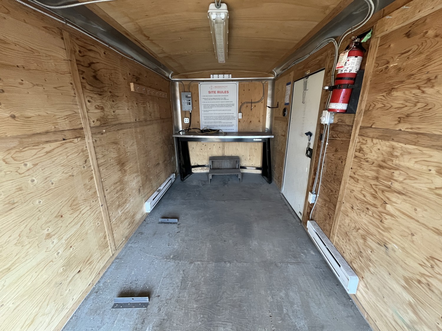 72 inch interior width, 84 inch interior height, side door, fold down door, electric brakes, spring suspension, slight water damage to roof panel see images*, 5000 lb axles, 225/17R15 tires
