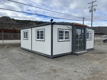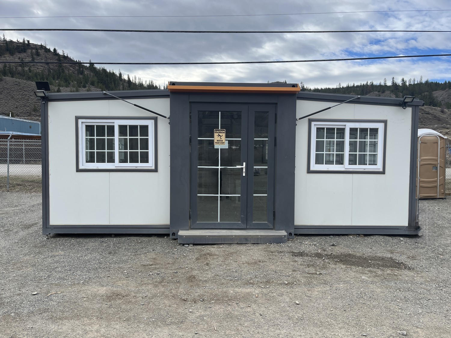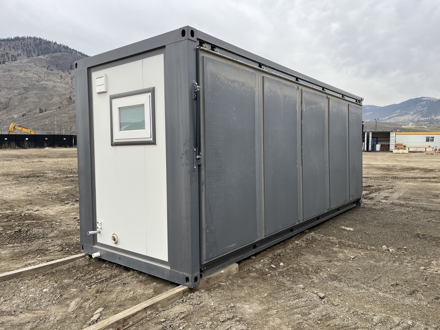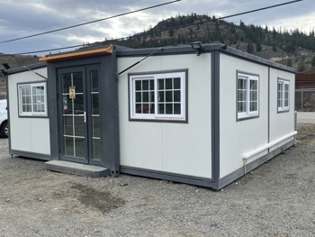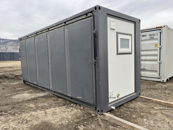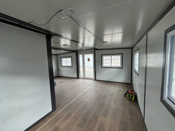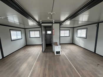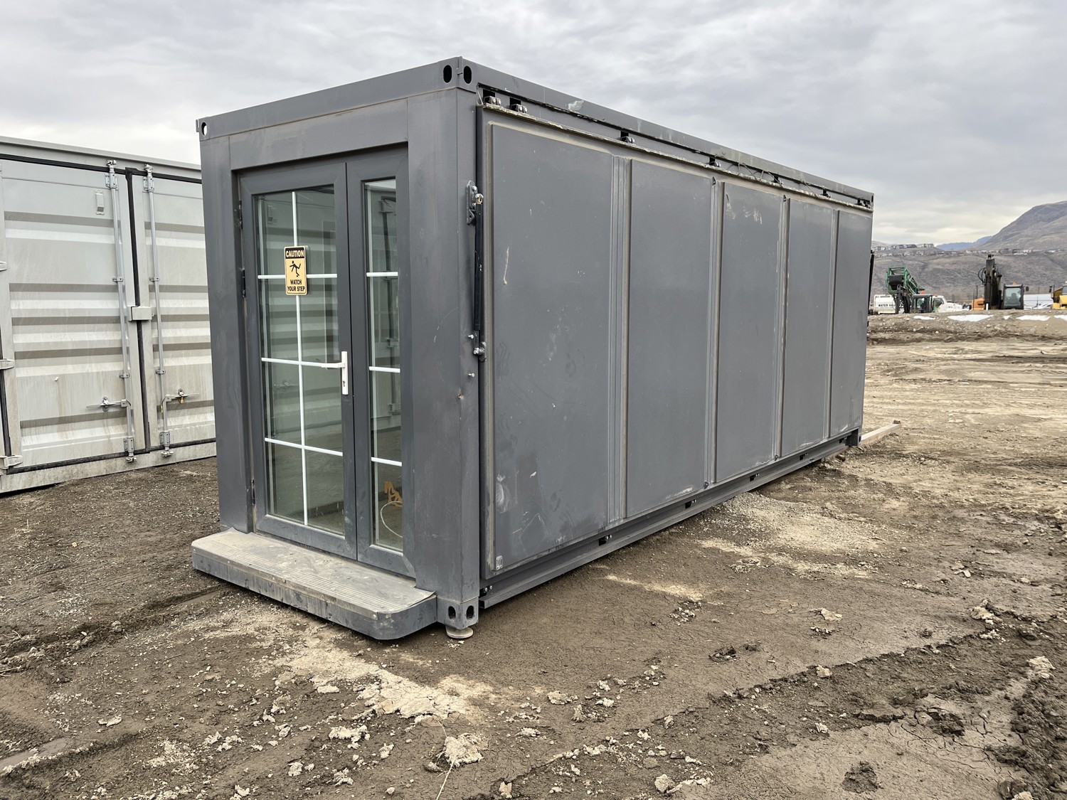 20 ft x 19 ft indoor area 349.7 sq ft, indoor height 7.45 ft, 7395 lb shipping weight, 18,000 BTU, 3 phase AC/heat unit included, bathroom/plumbing unused* additional wiring and LED lights included