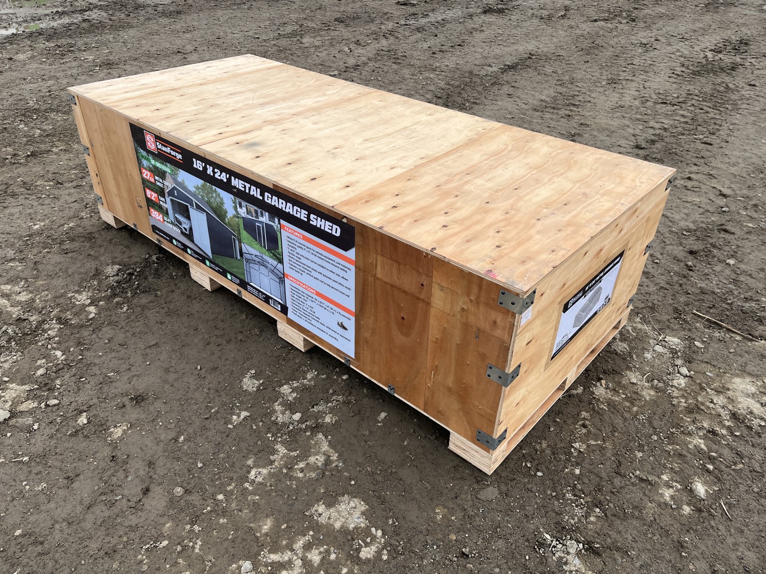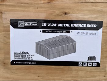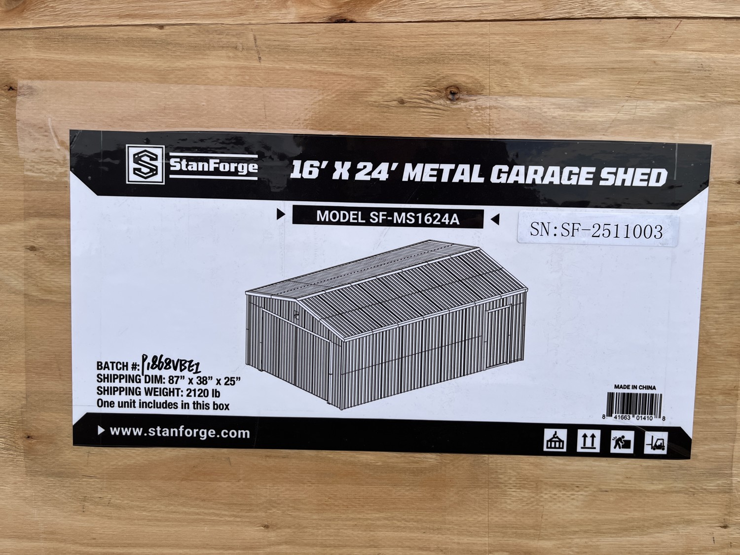StanForge-MS1624 16 Ft X 24 Ft Metal Garage Shed with Double Front Doors (Unused)